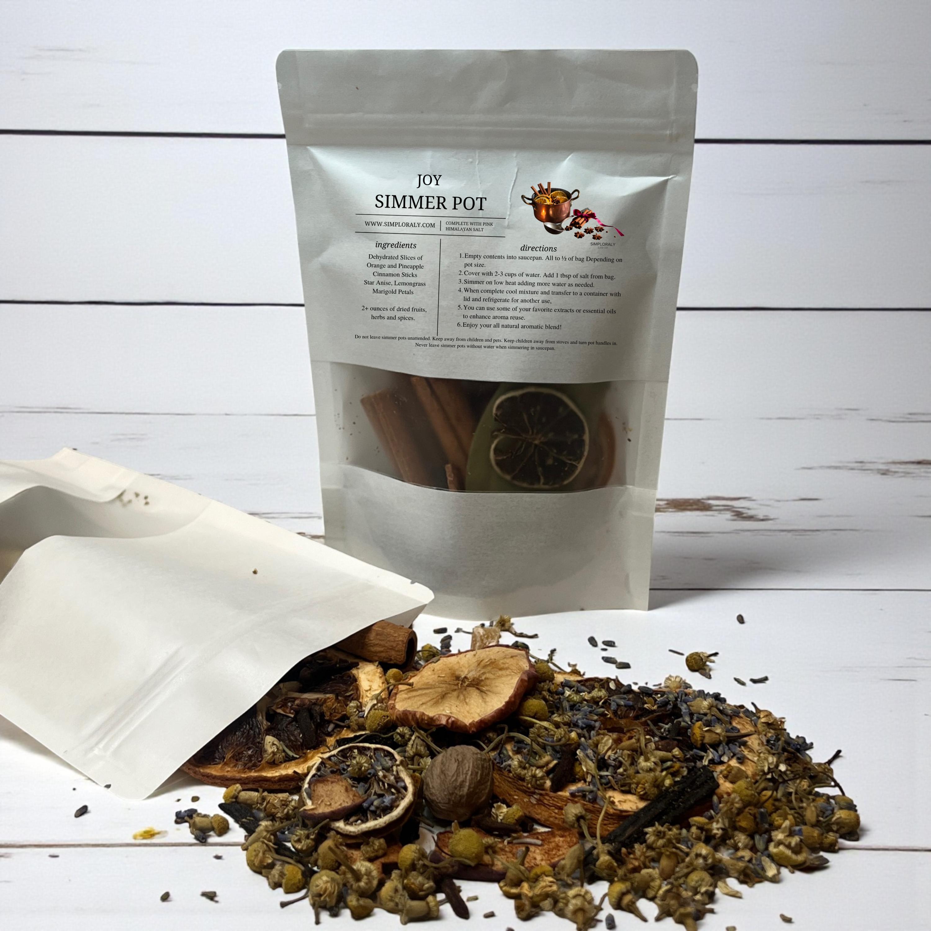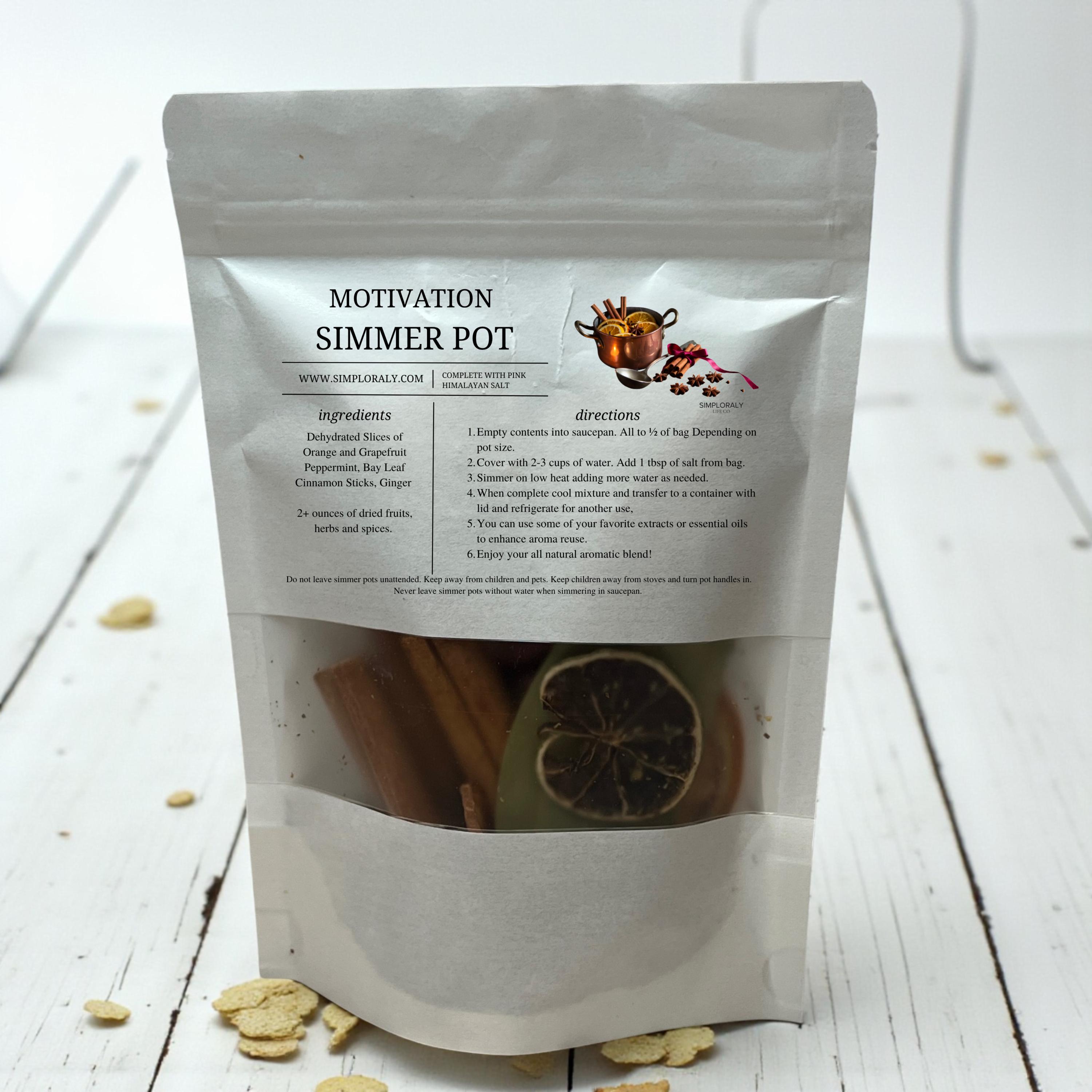 • Comes with roughly 2 tablespoons of pink Himalayan salt to remove negativity and is a natural preservative that will keep your simmer pot as fresh as possible for more uses. If you'd like to use the salt just add the packet to the bag and shake. Salt is in its own resealable bag.