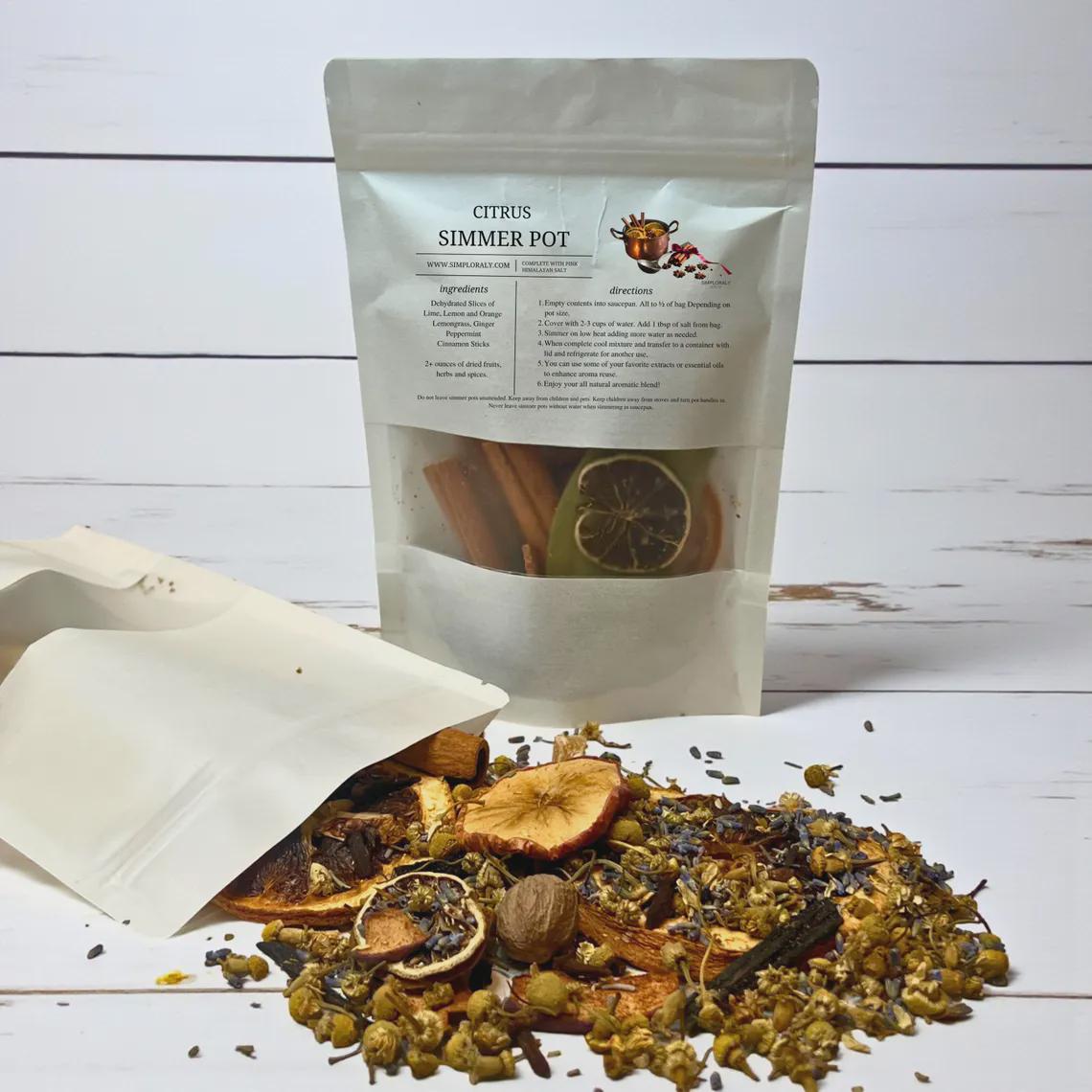 • One simmer pot botanical blend (approx. 2.5 to 3oz)
