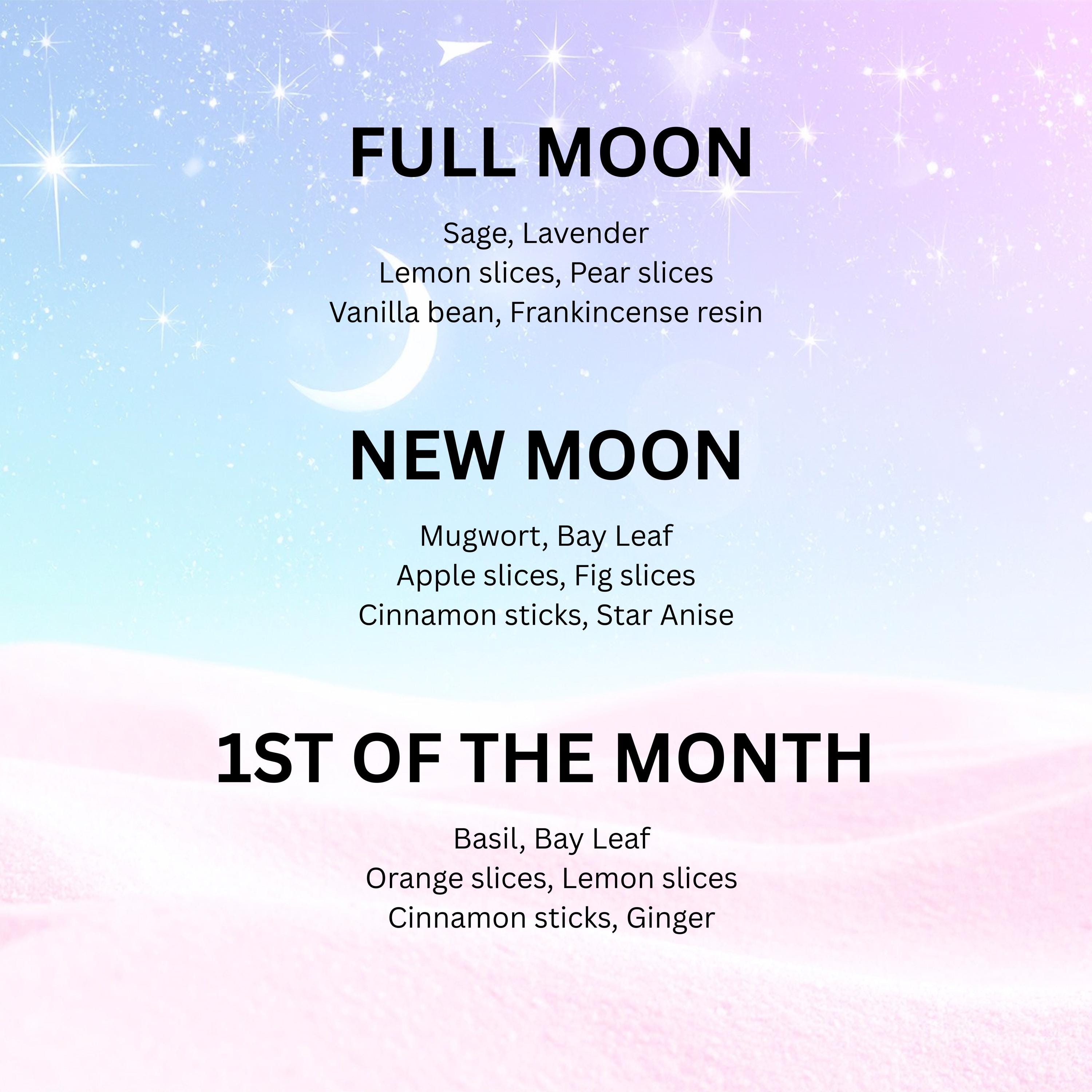 A lunar simmer ritual crafted for aligned timing — for the woman who feels the moon cycles, honors intuition, and sets her intentions intentionally. These botanical blends are designed to support manifestation, release, clarity, and monthly energetic reset.