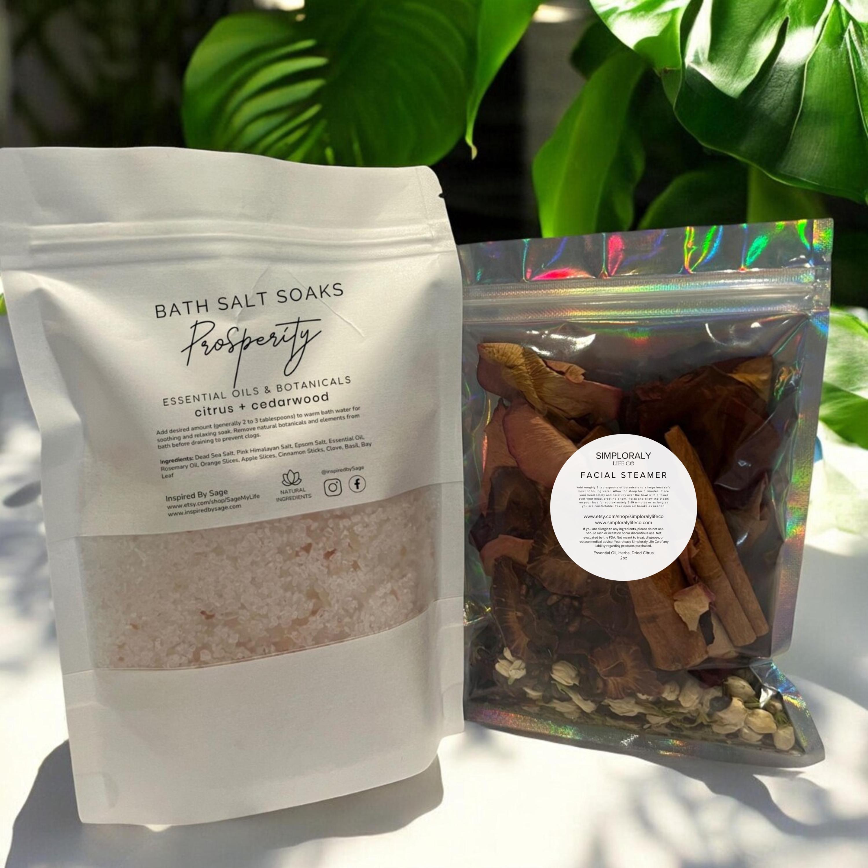 • Prosperity Blend Bath Salt Soak & Facial Steamer (or choose another blend)