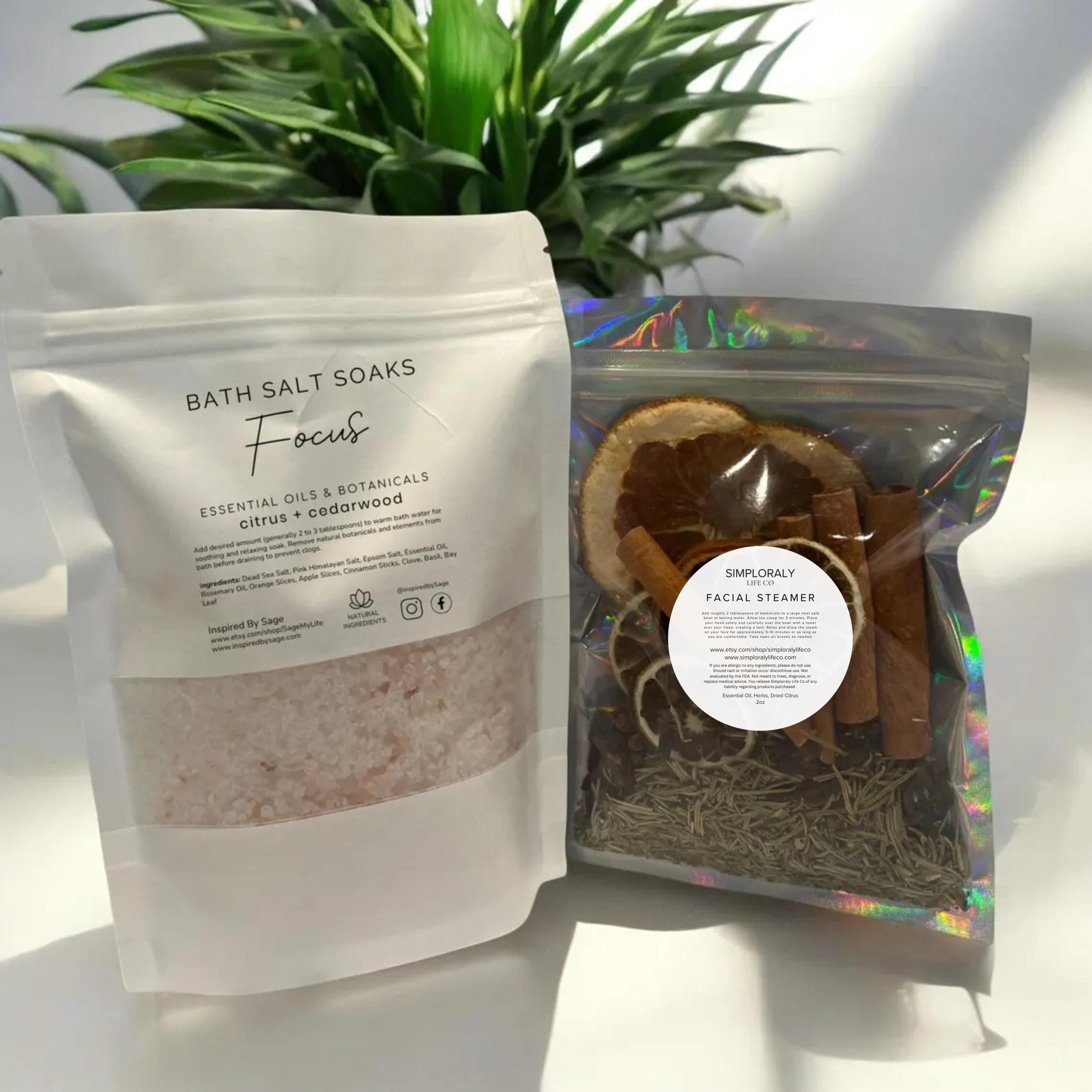 Enhance focus and mental clarity with this herbal and botanical bath salt soak and facial steamer set. A perfect blend of herbs designed to support concentration, boost productivity, and deepen relaxation.