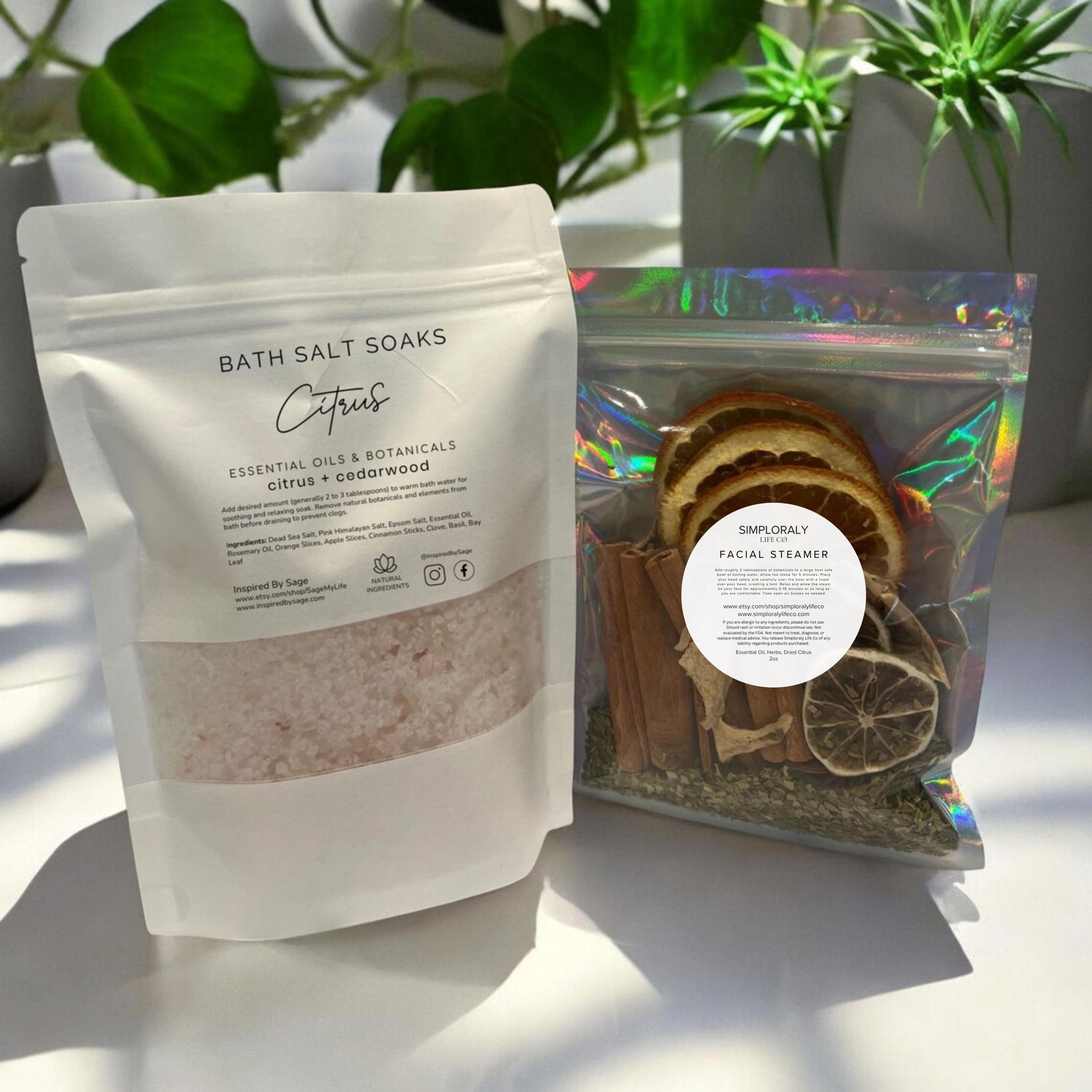 • Citrus Blend Bath Salt Soak & Facial Steamer (or choose another blend)