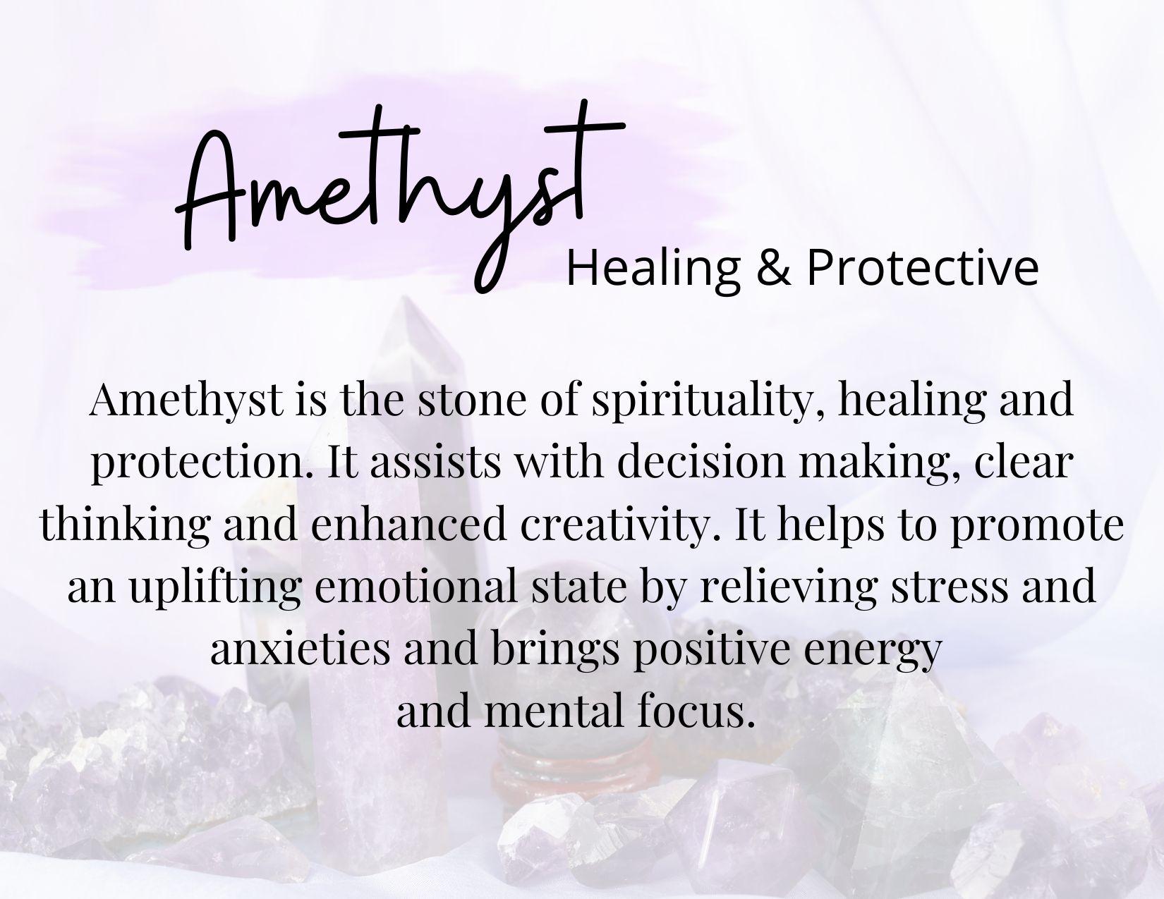• Choice of raw Amethyst points (3–5 specimens depending on size) or Clear Quartz