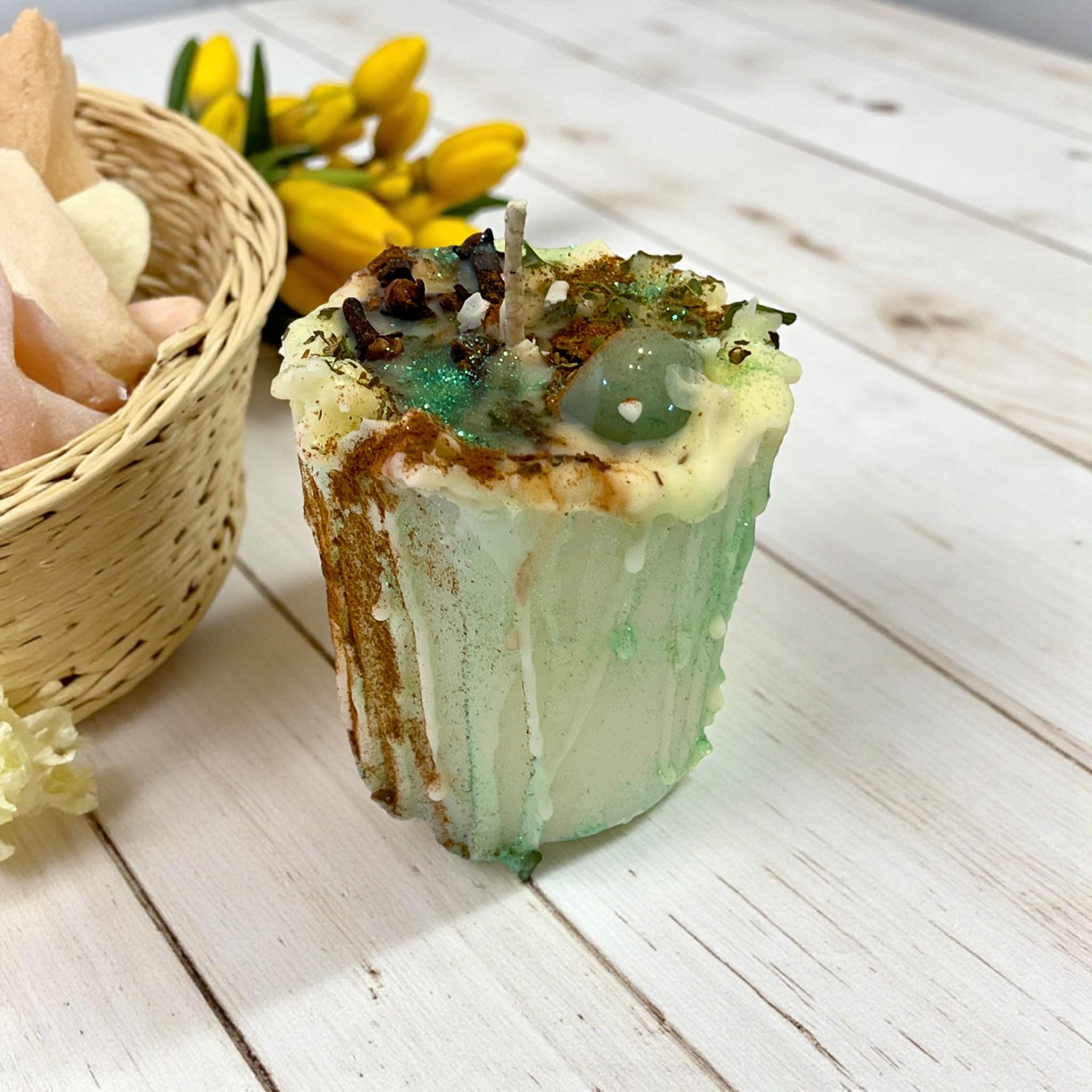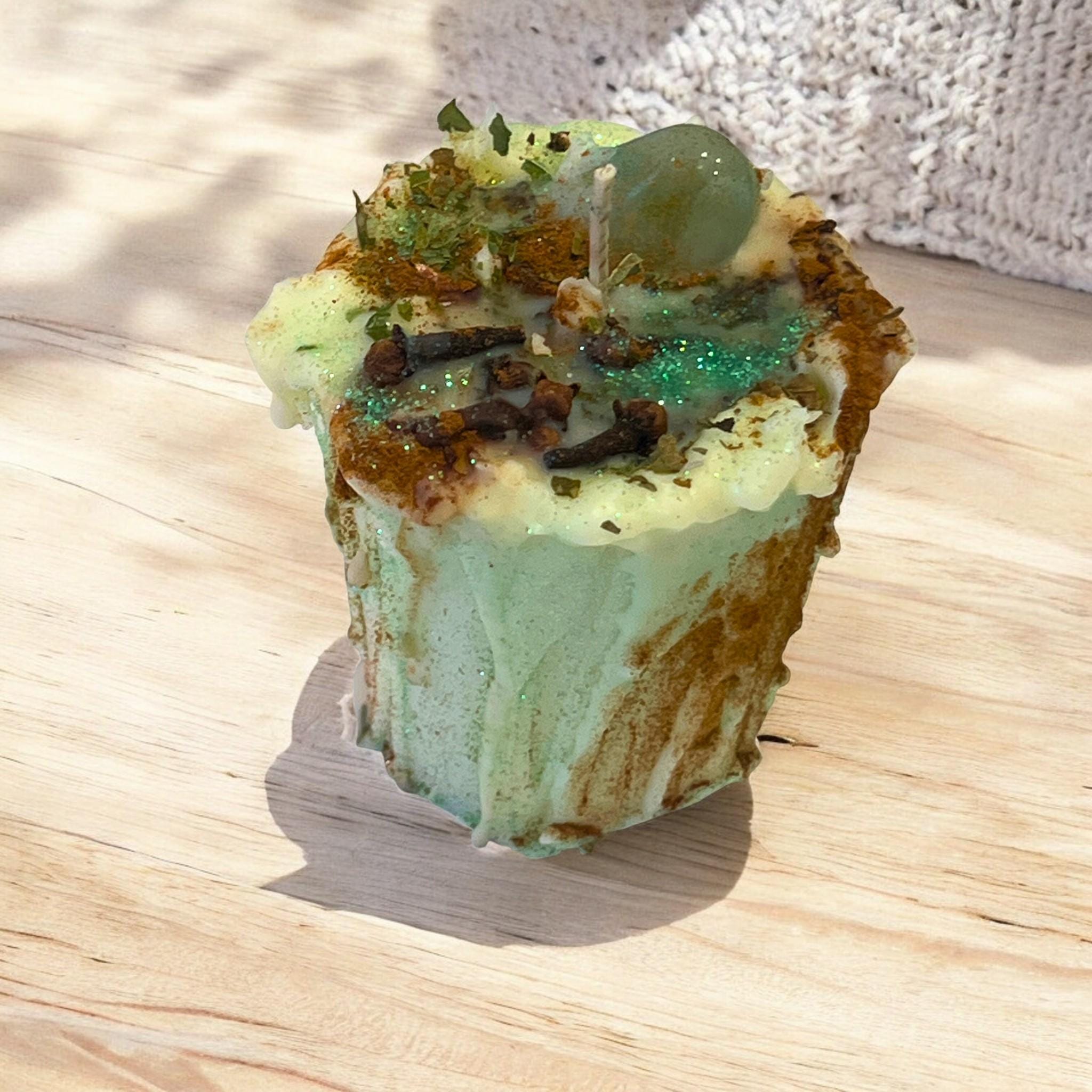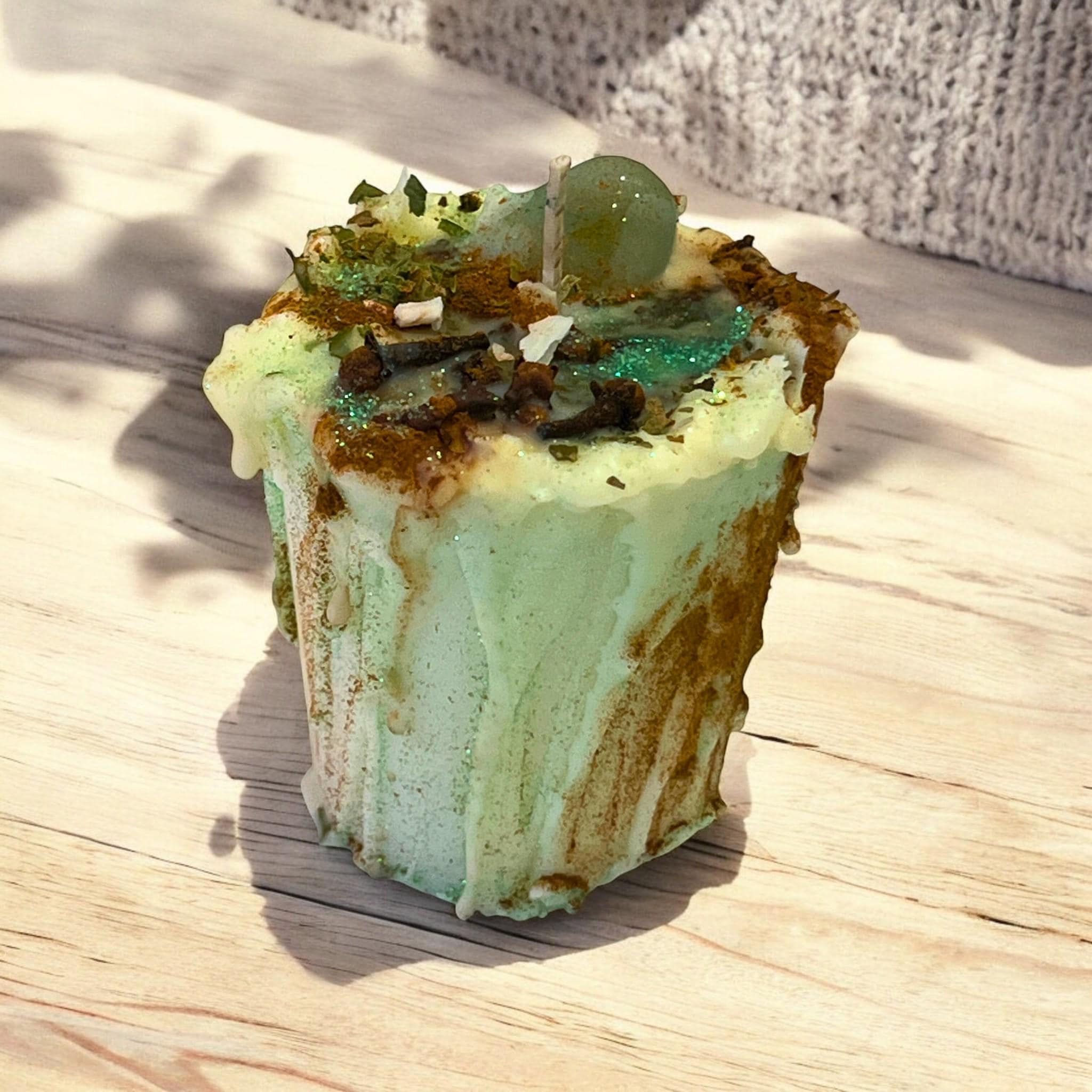 • Soy wax drip candle with glitter, herbs, & essential oils