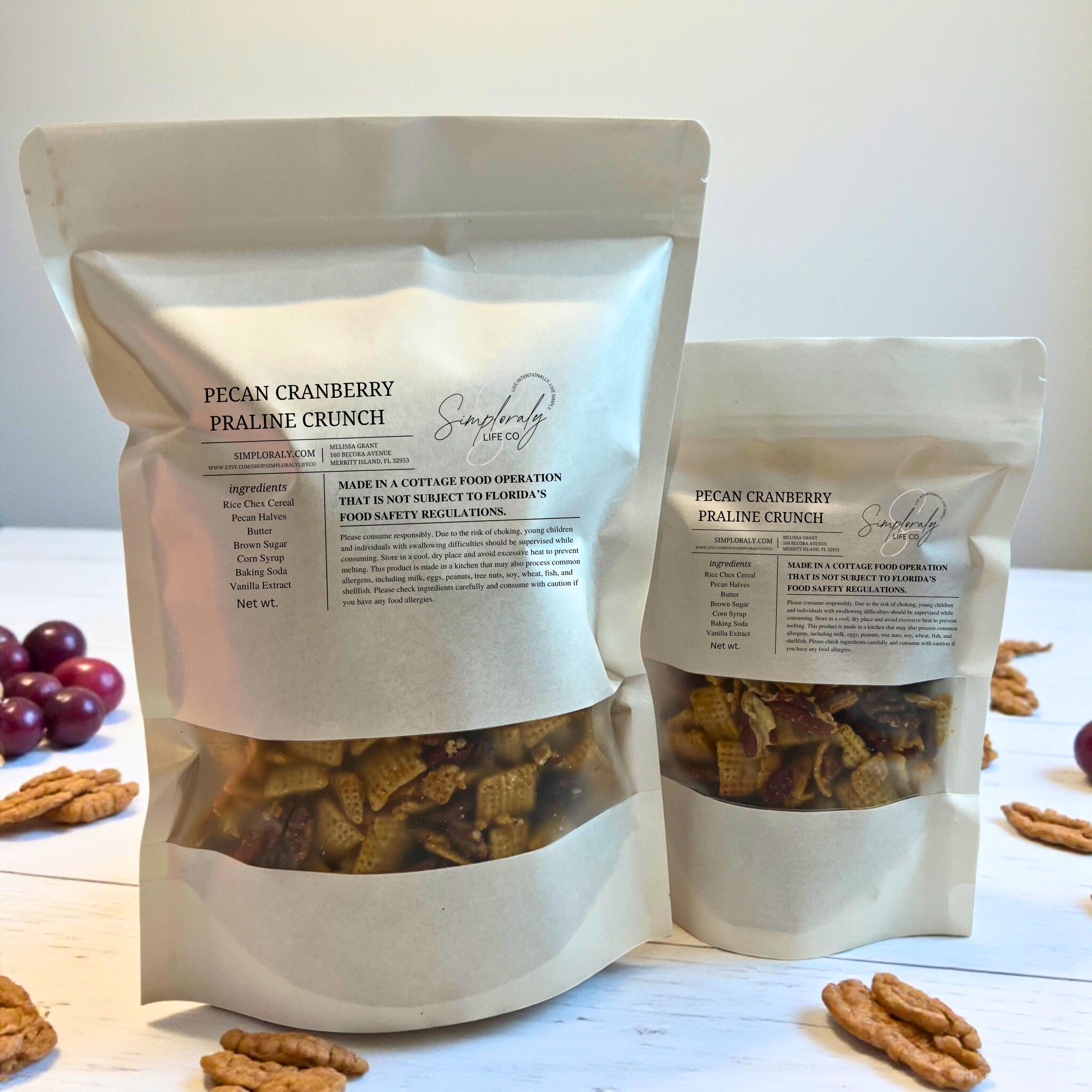 Indulge in the irresistible sweetness of our Praline Pecan Crunch Snack Mix a handmade blend of toasted pecans, buttery praline coating, and the perfect hint of crunch. Every small batch is crafted with care to capture that classic Southern flavor: sweet, nutty, and satisfyingly crisp.