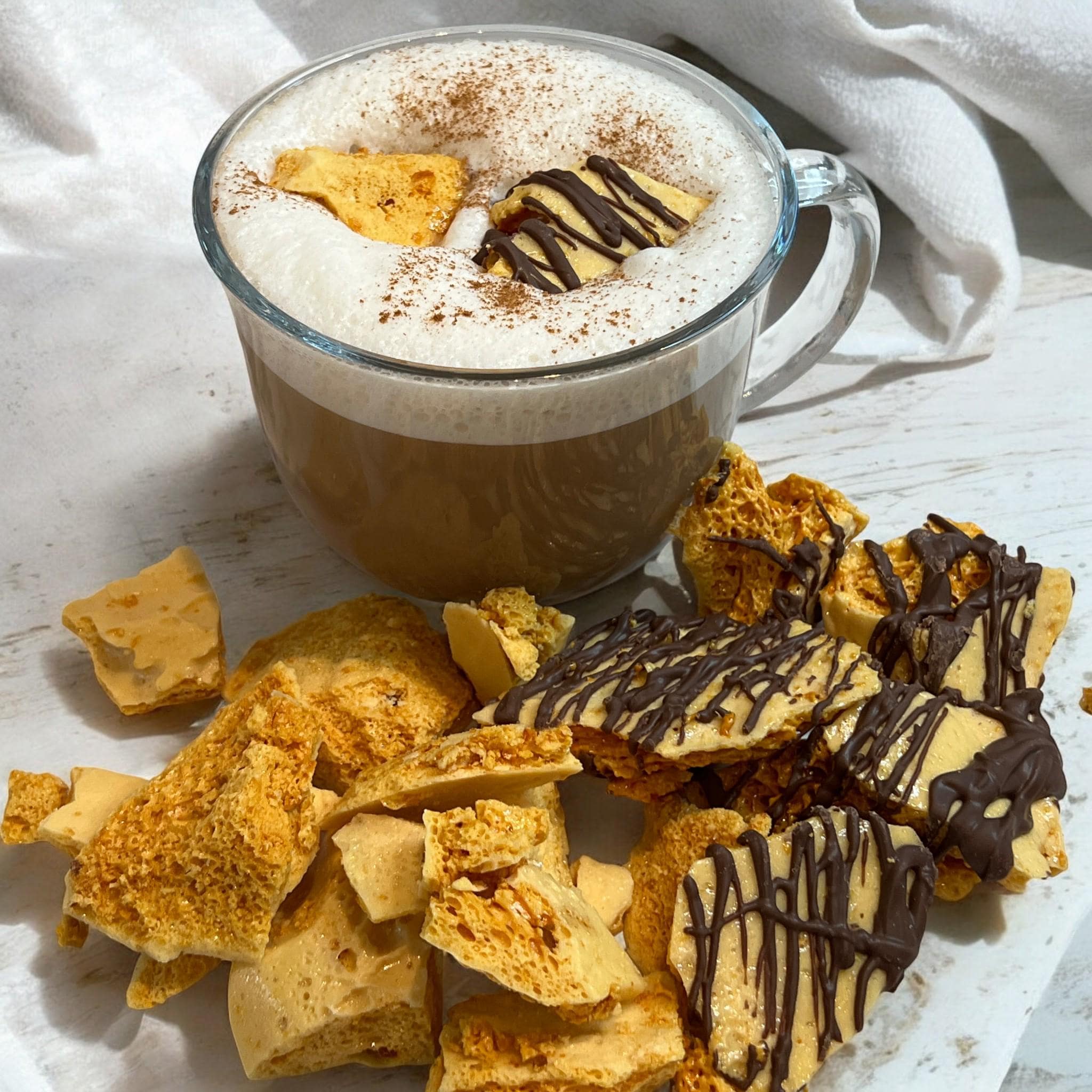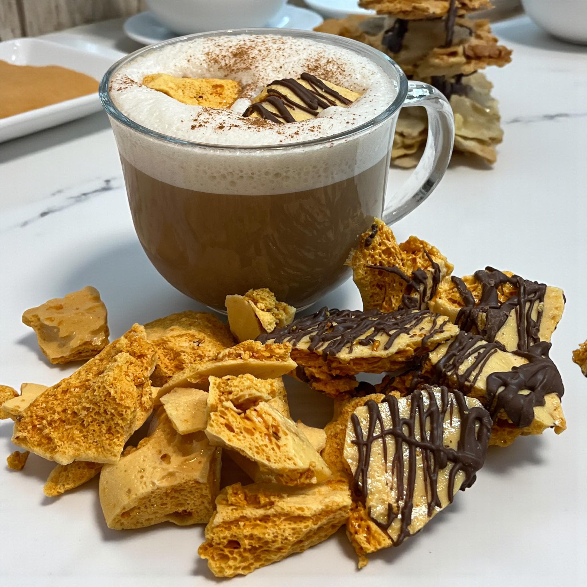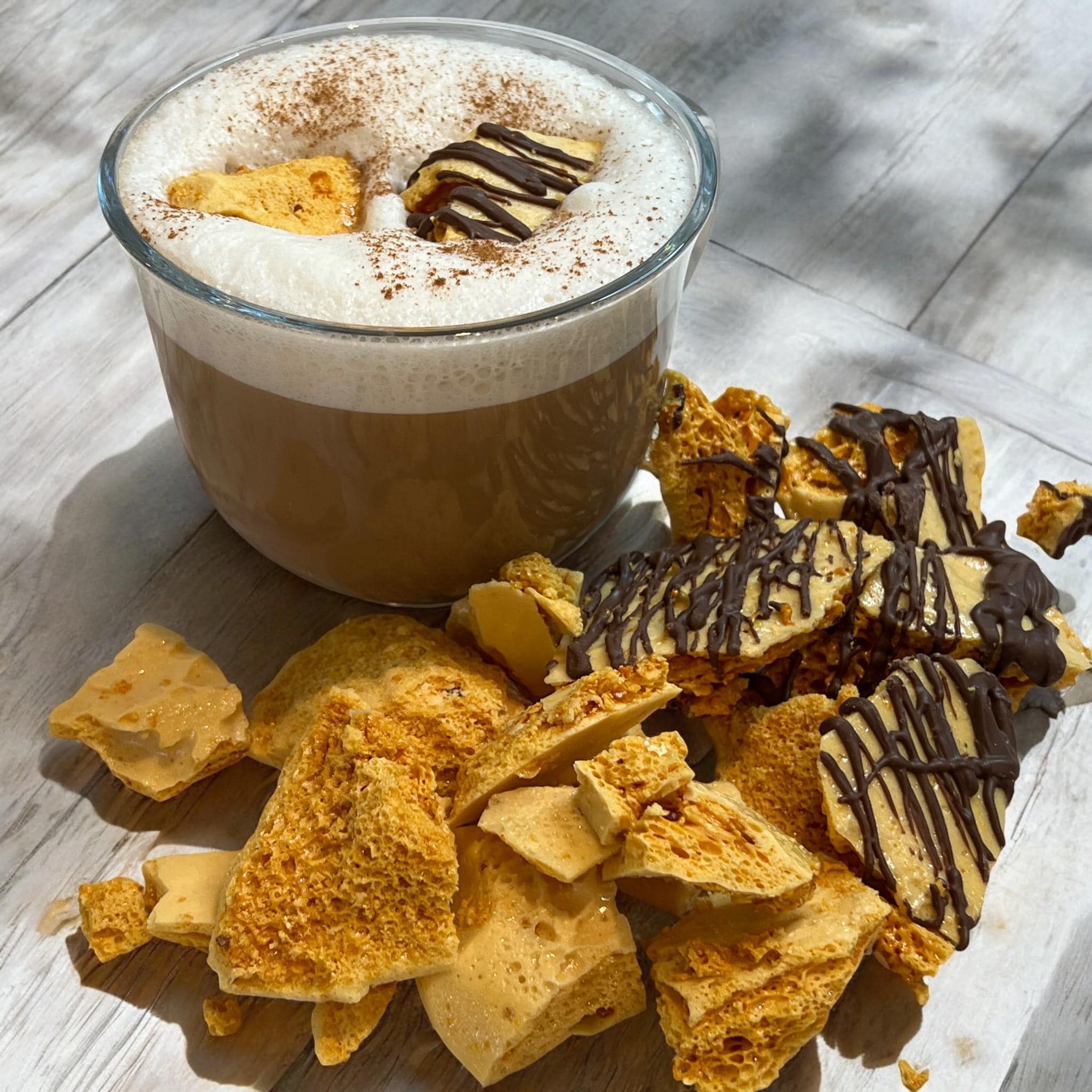 Add a touch of golden crunch to any dessert with our Honeycomb Candy Lattice Garnish and Topping. A handmade confection that combines light, airy texture with buttery caramel sweetness. Each piece is crafted in small batches for that signature honeycomb snap and melt-in-your-mouth finish.