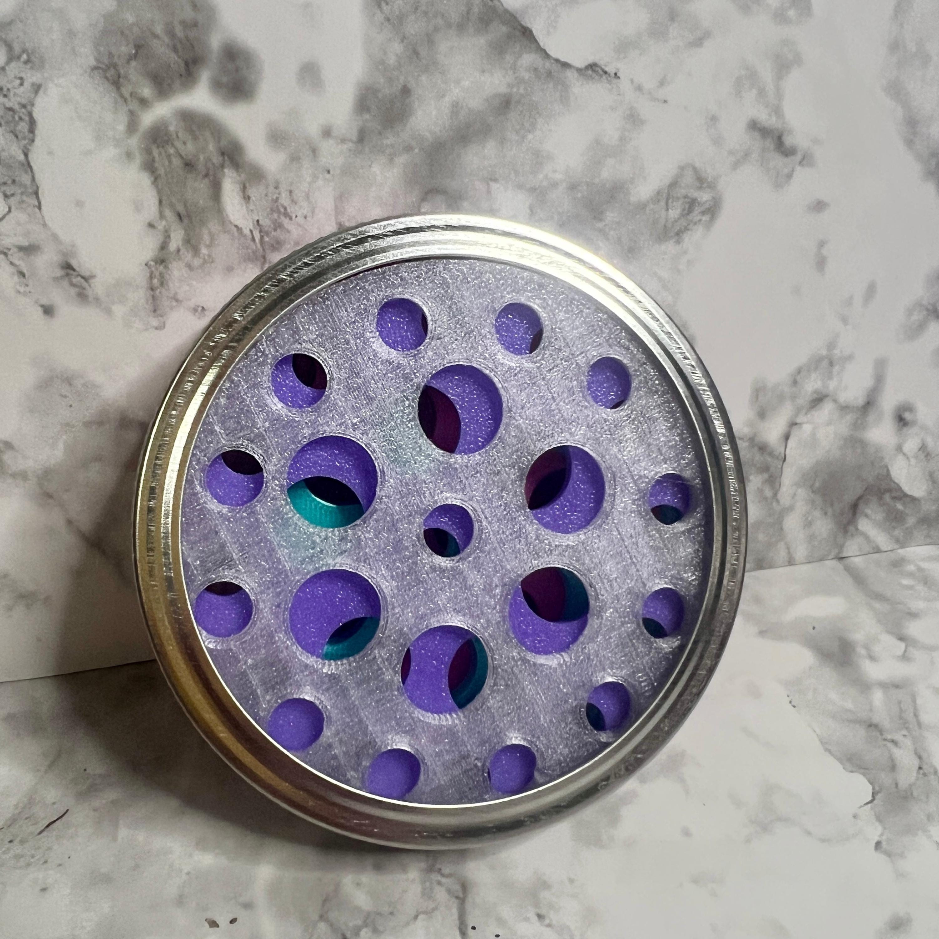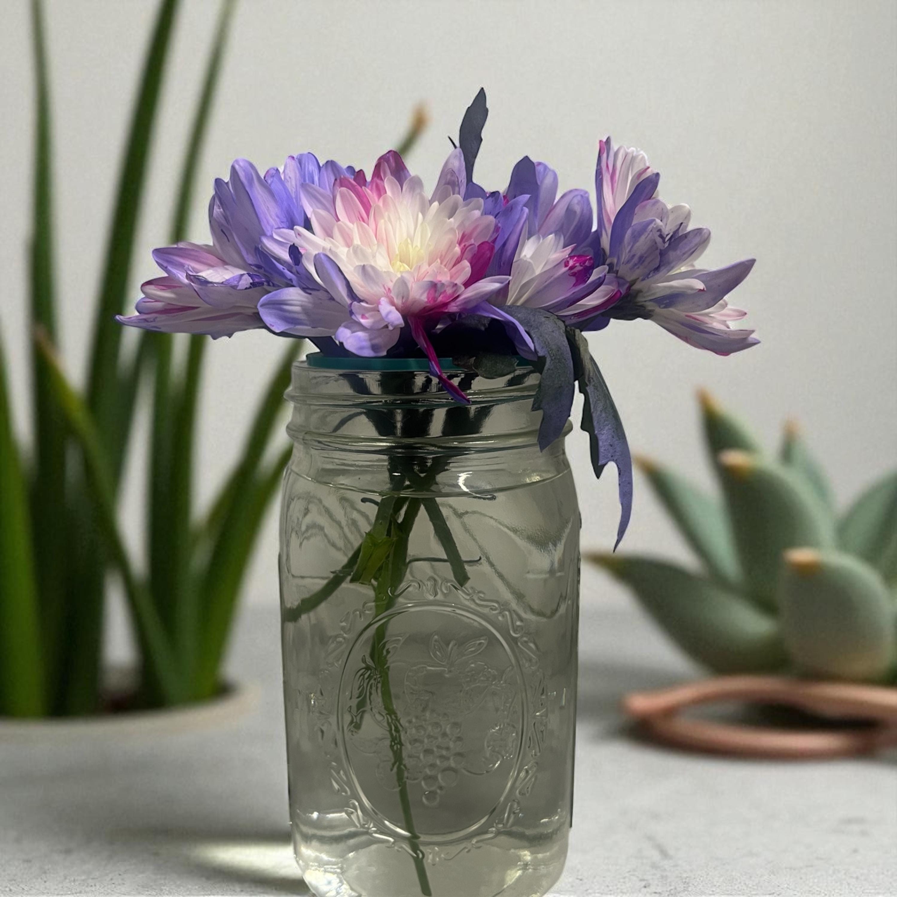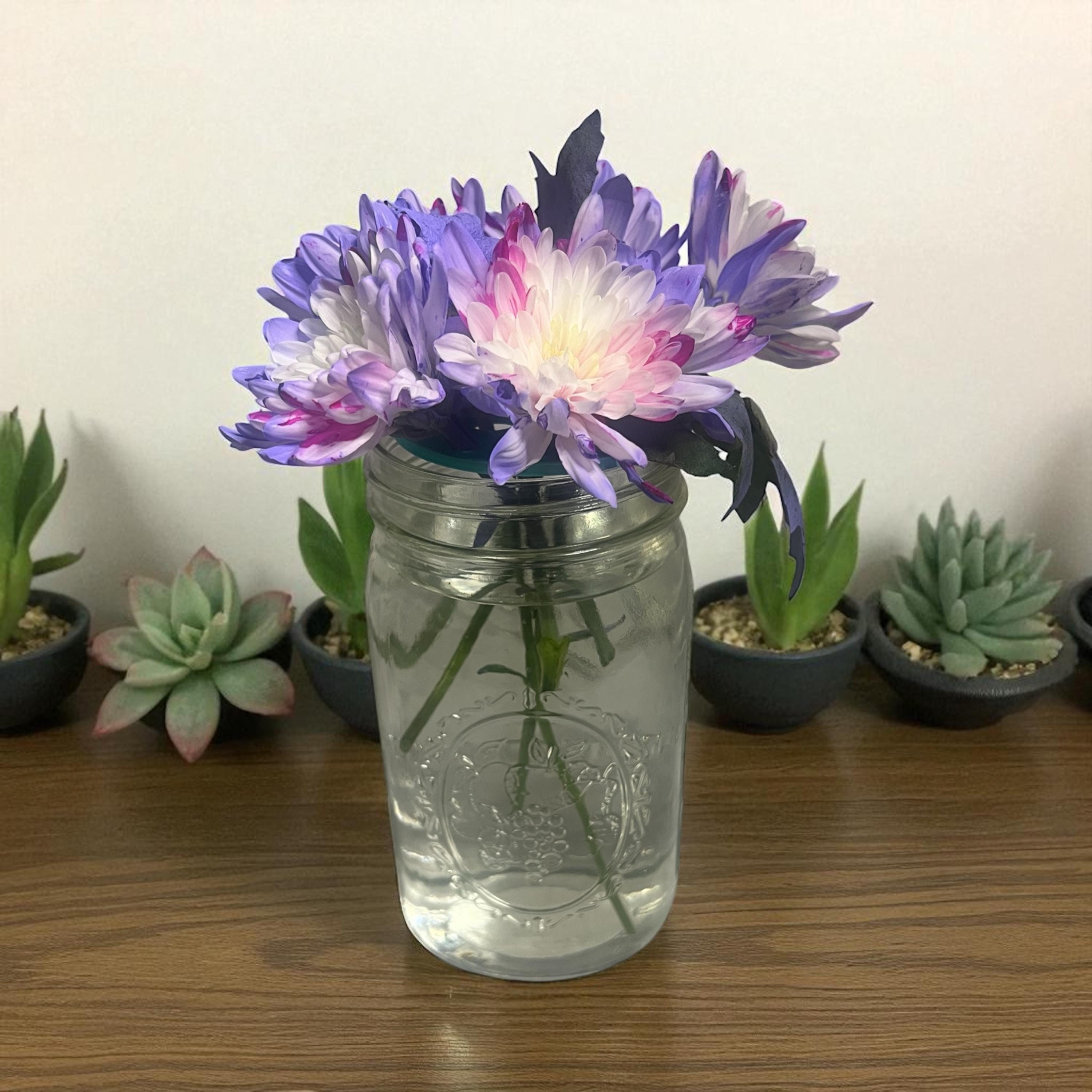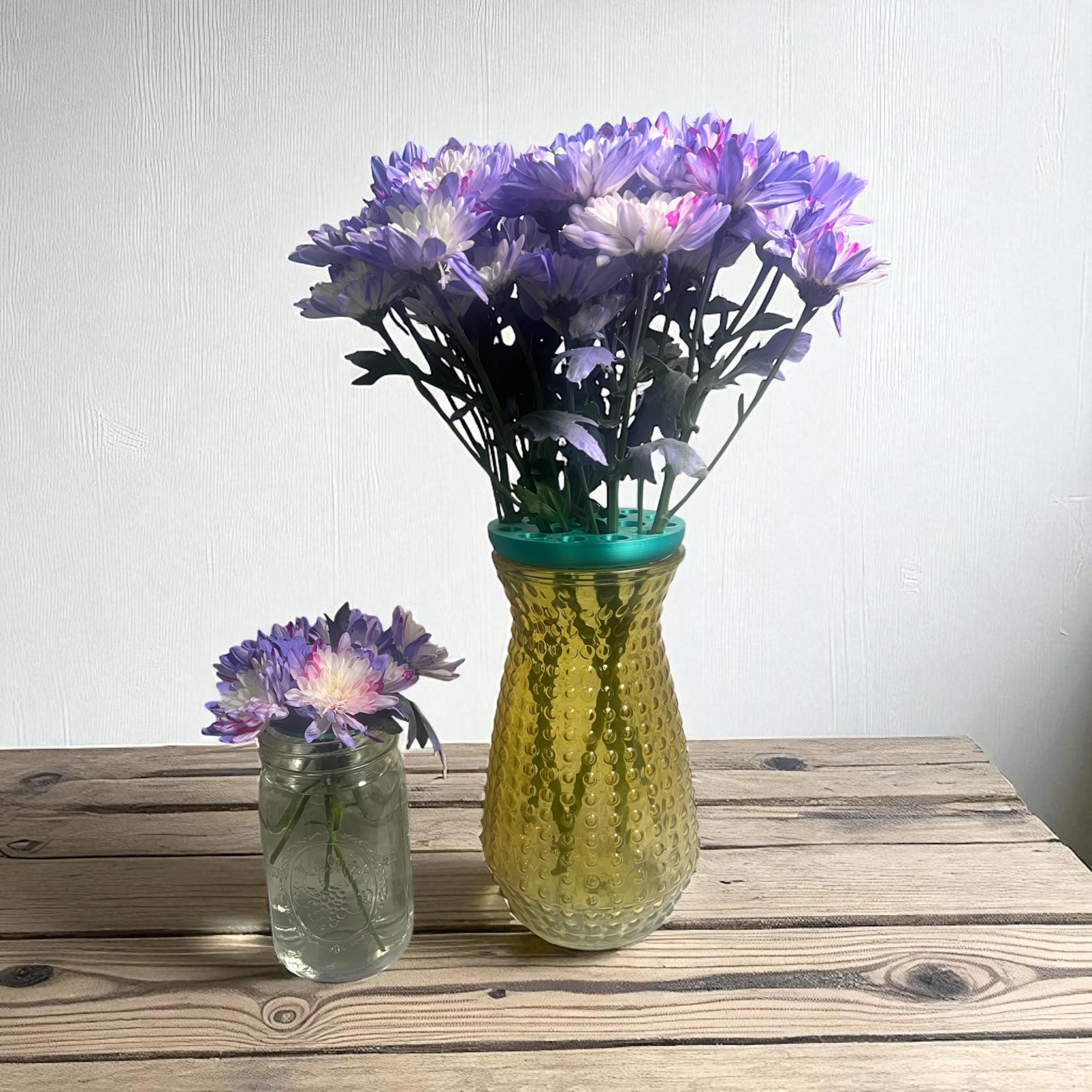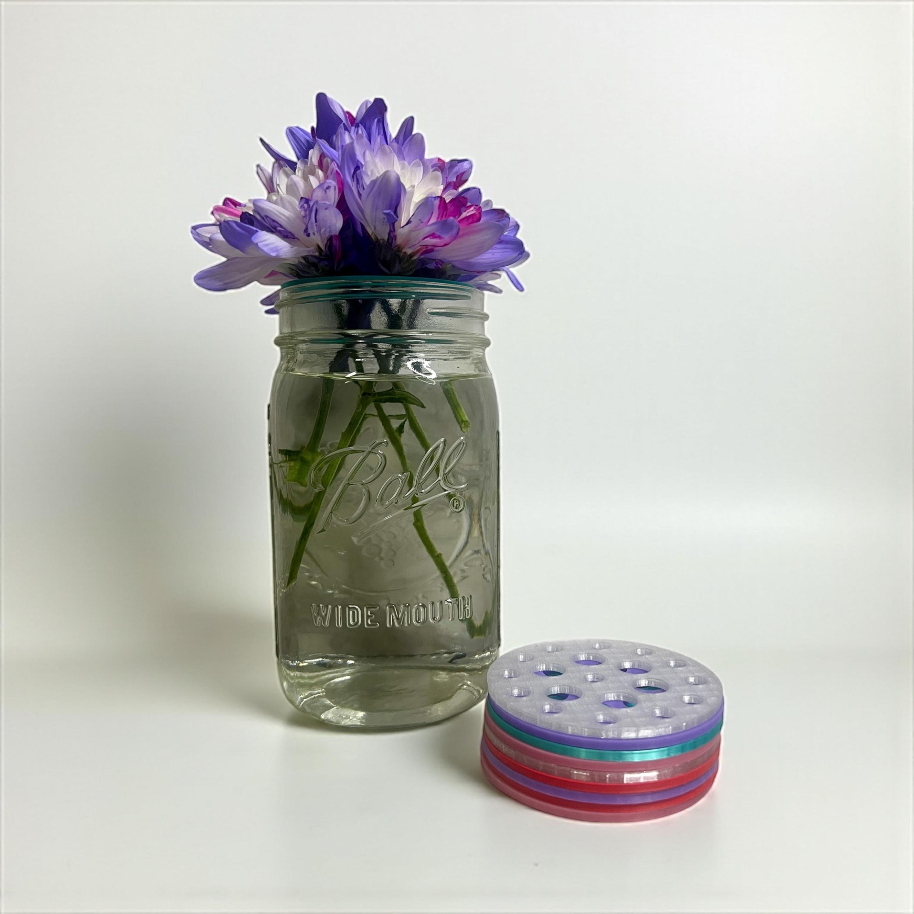 • Sized to fit any wide mouth mason jar, easily put the flower frog in the threaded ring and screw the ring to the top of your jar or you can lay flat on top of other jars and vases that do not have ring closures.