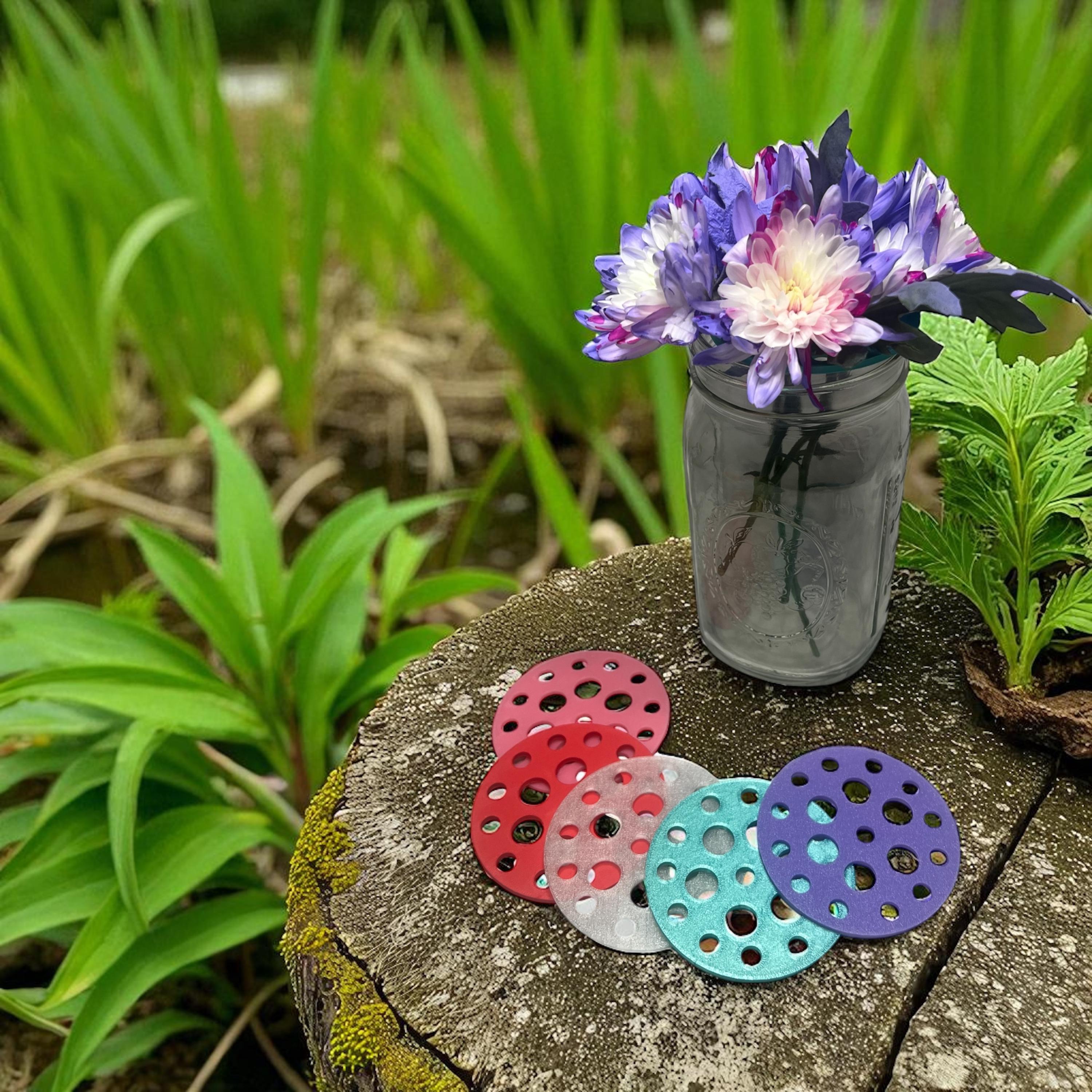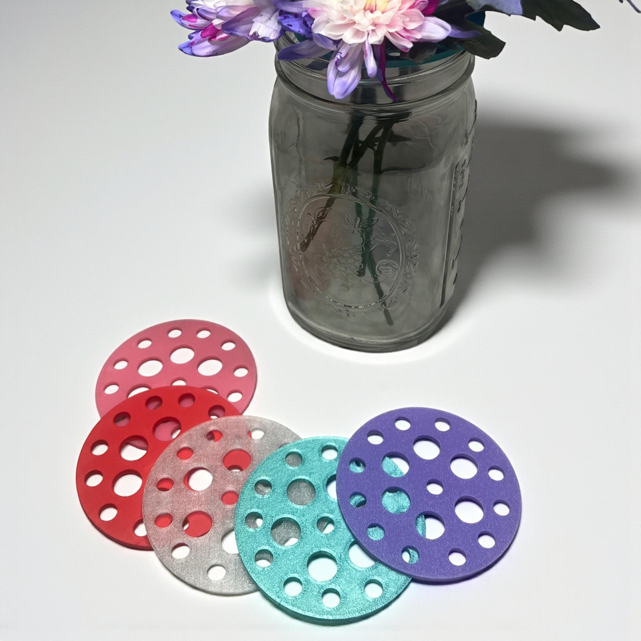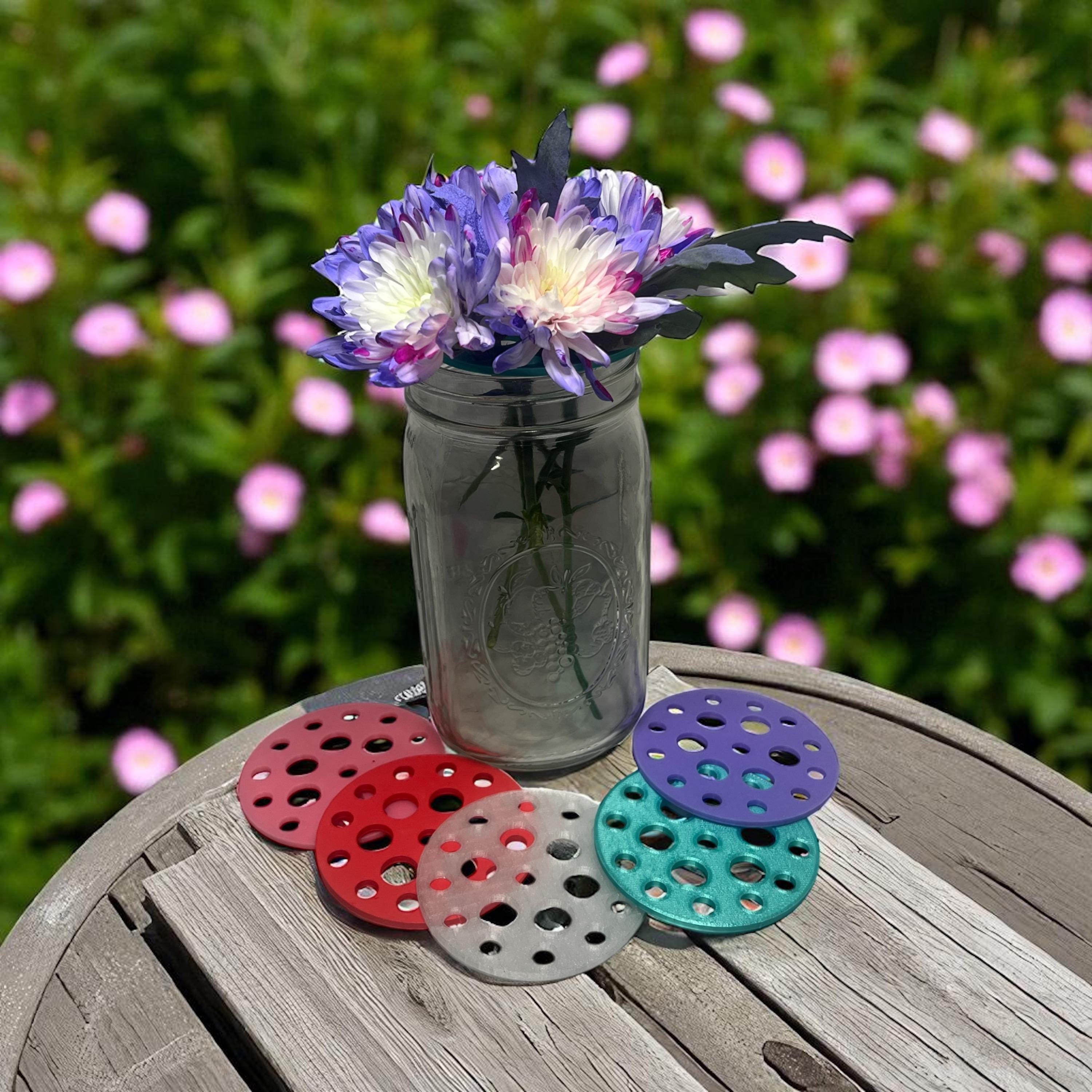 Each round insert fits snugly inside a standard mason jar ring or can rest on top of vases and containers, turning them into effortless floral arrangers. Simply place your stems through the openings for balanced, professional-looking arrangements every time.
