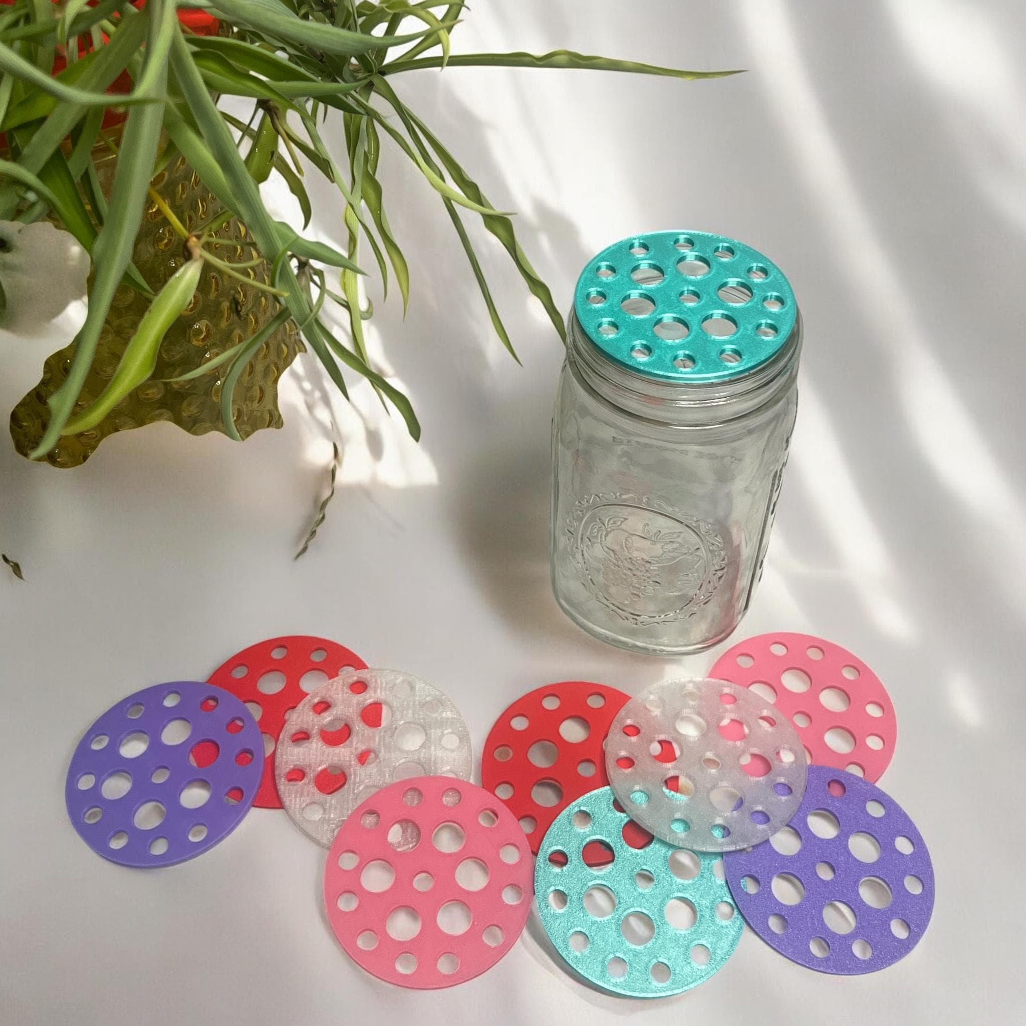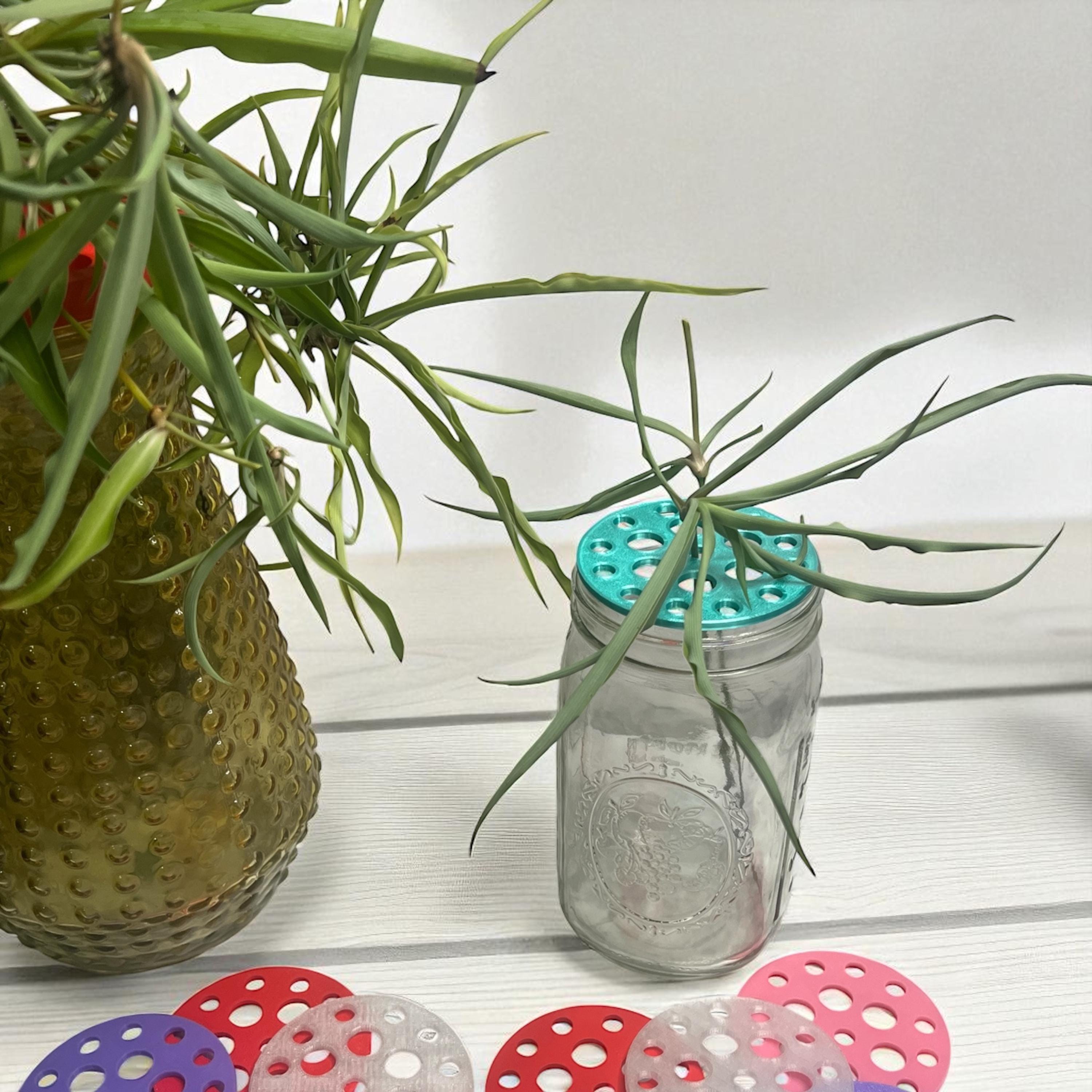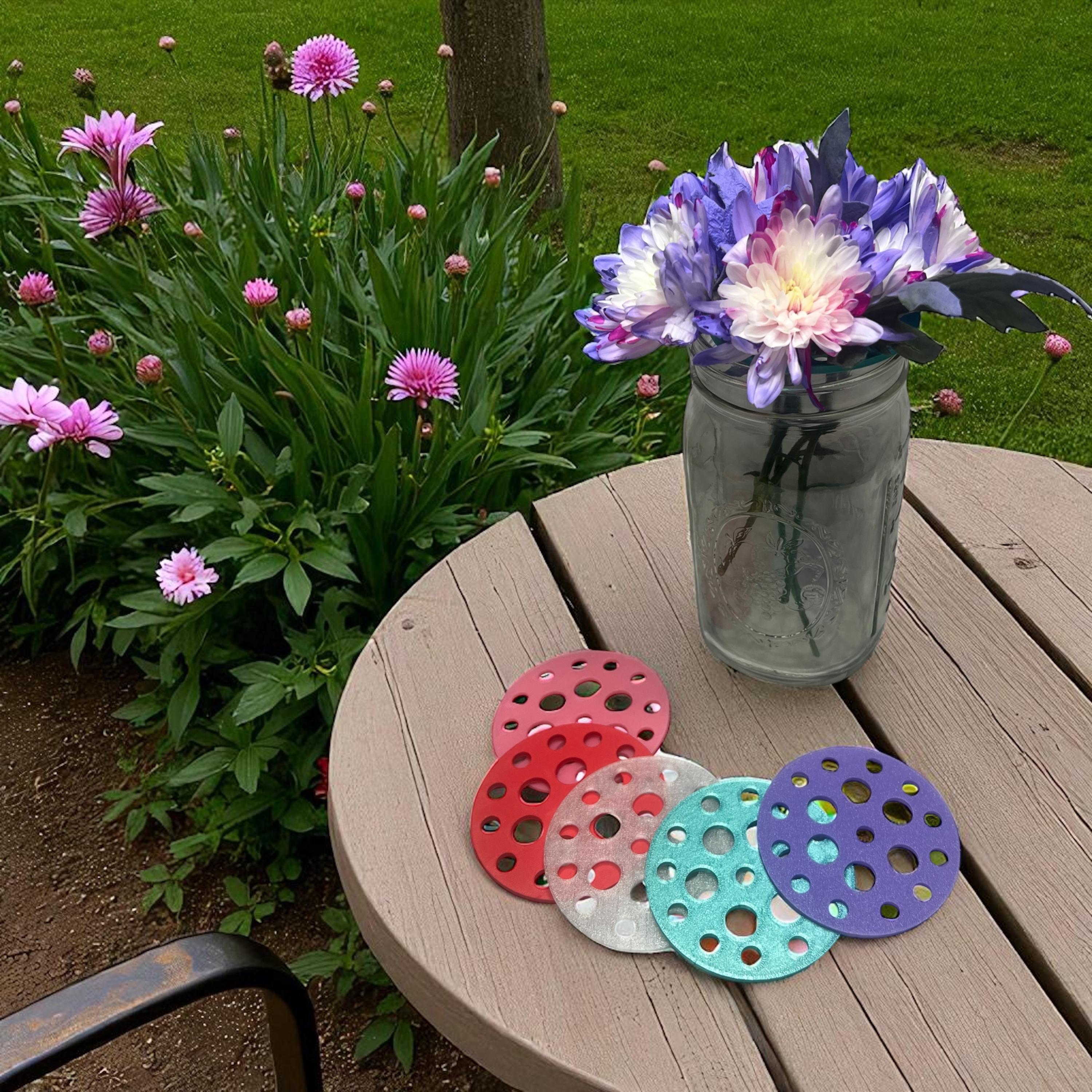 Each round insert fits snugly inside a standard mason jar ring or can rest on top of vases and containers, turning them into effortless floral arrangers. Simply place your stems through the openings for balanced, professional-looking arrangements every time.