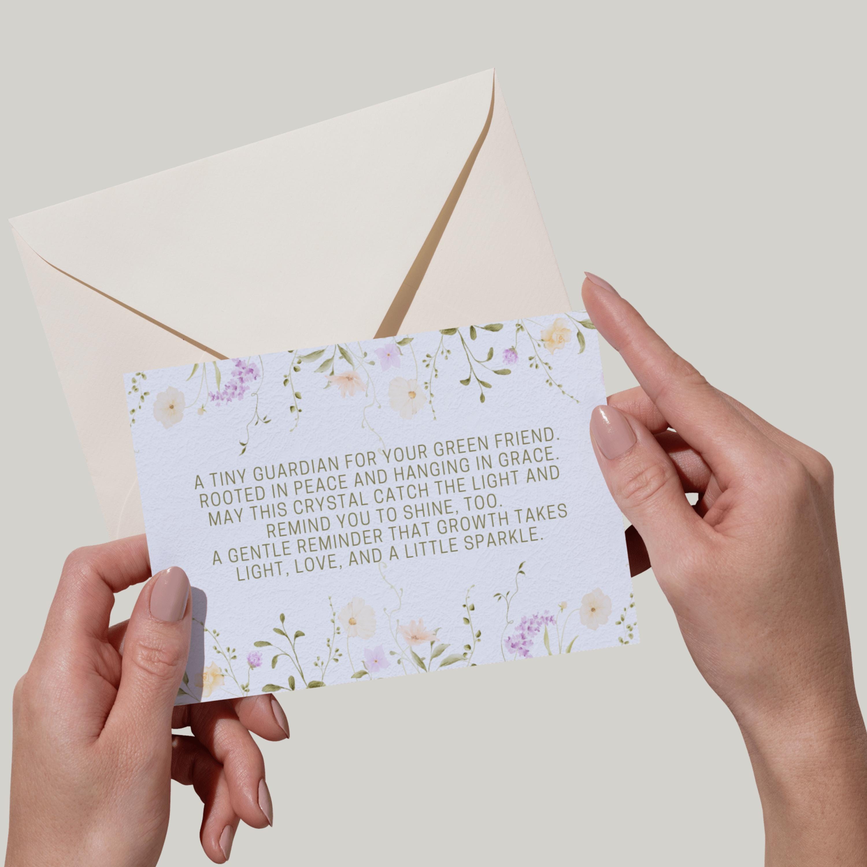 As sunlight hits the crystal, it catches and scatters light a simple reminder to grow where you feel bright and grounded. Perfect for plant lovers, mindful homes, or spiritual gift giving.