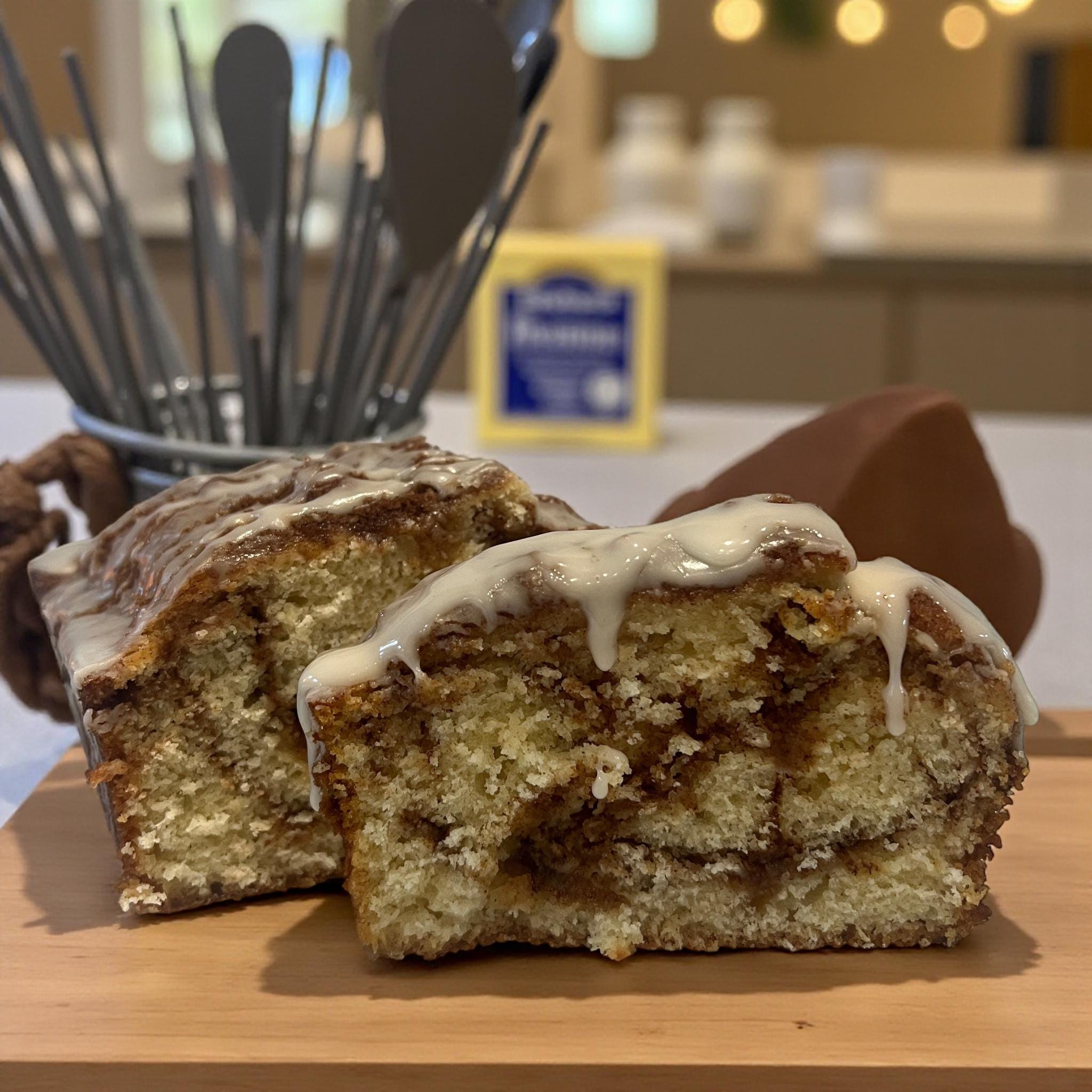 • Soft, sweet cinnamon swirl bread with vanilla glaze