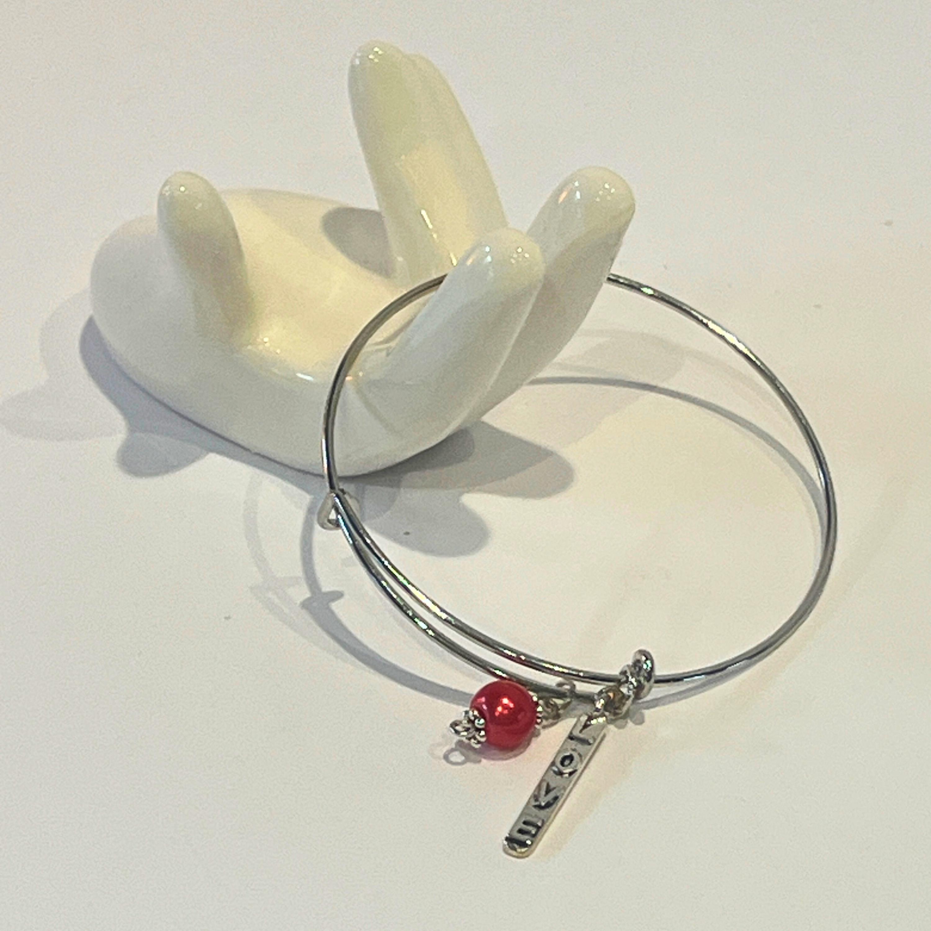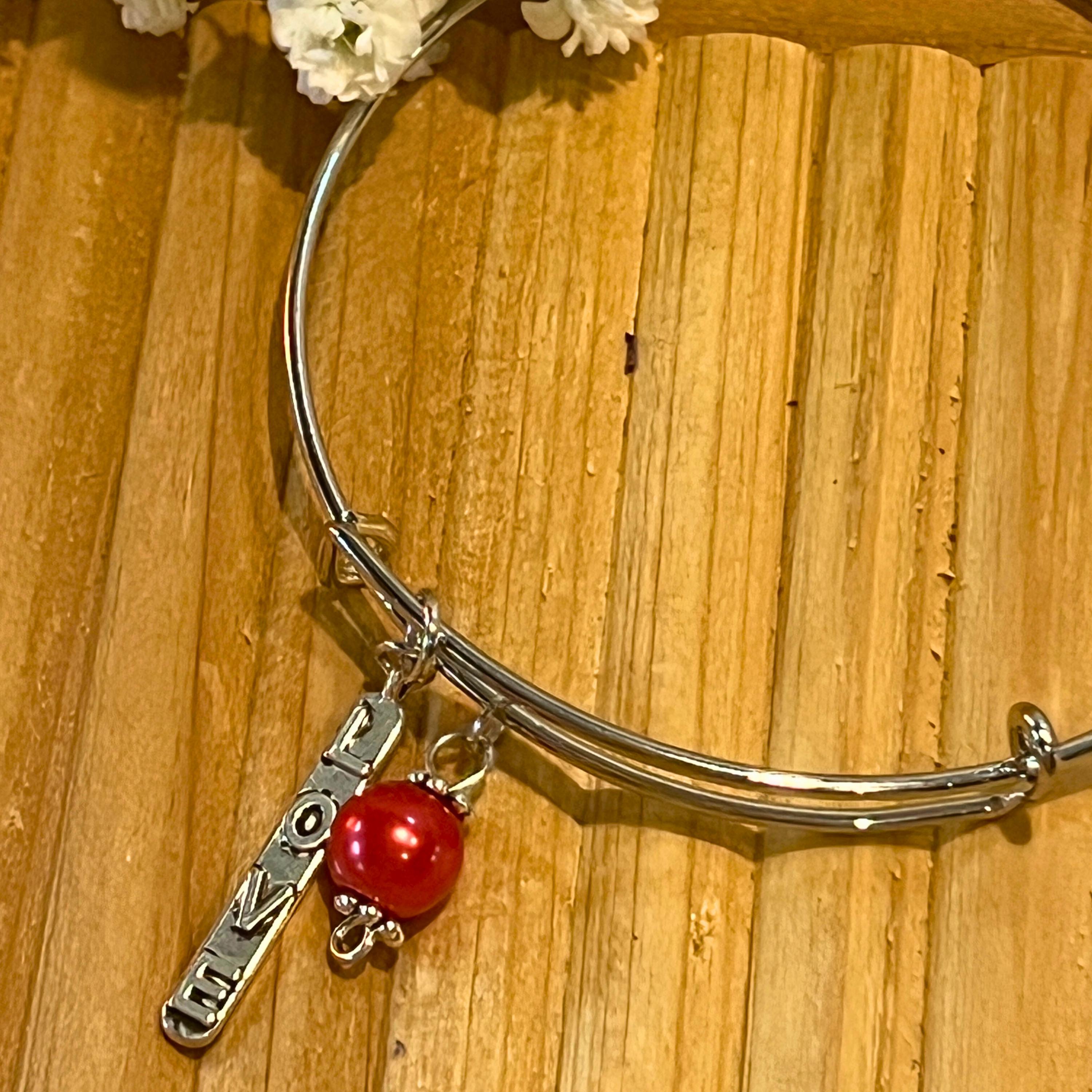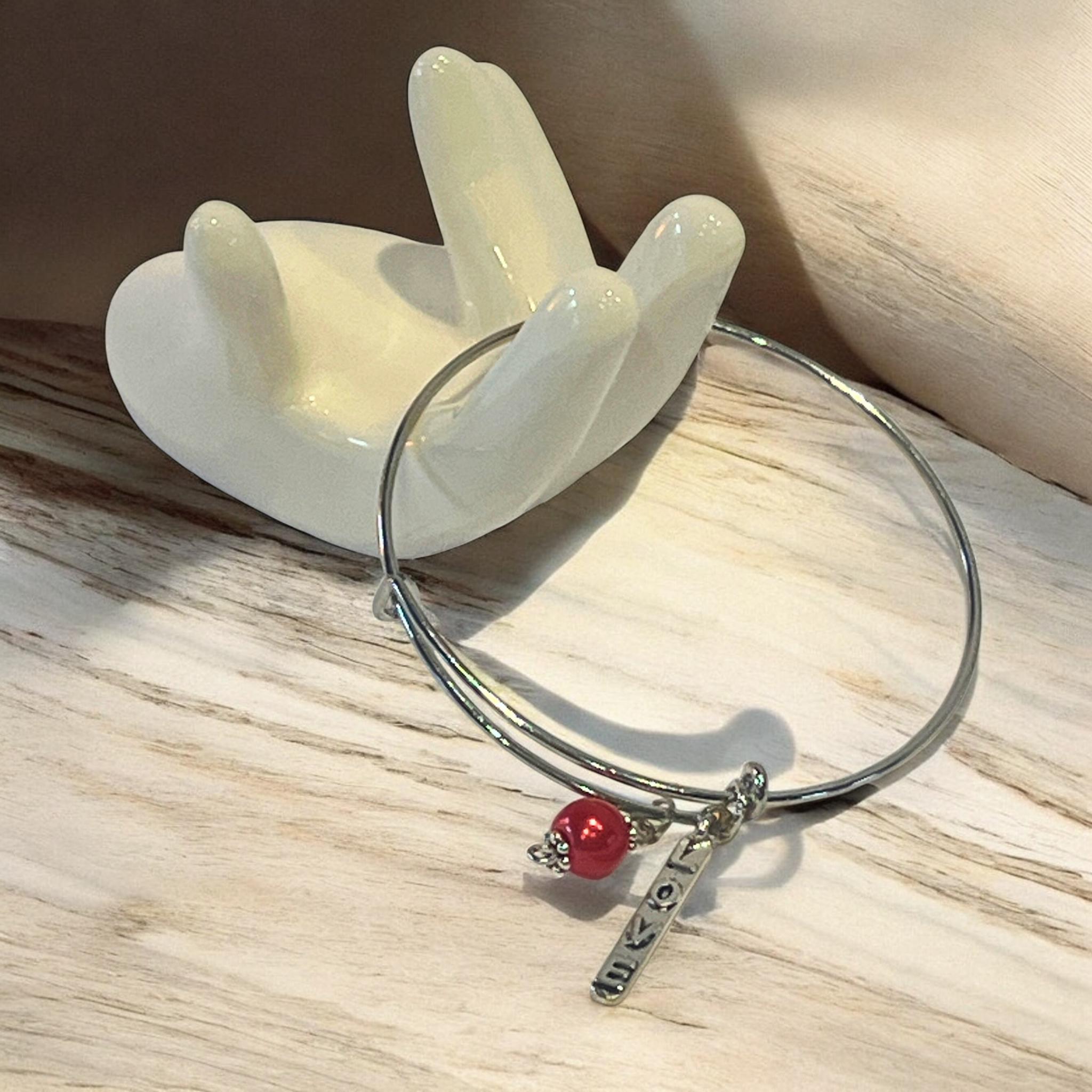 Simple, soft, and filled with intention. The Love Charm Bangle Bracelet symbolizes the kind of love that endures...patient, kind, and rooted in faith. With its silver tone, glass bead, and elegant charm, it’s a piece that speaks from the heart and a reminder to love yourself and others. Semi-adjustable (expandable) for comfort, beautiful alone or stacked with others, and perfect for daily wear or heartfelt gifting.