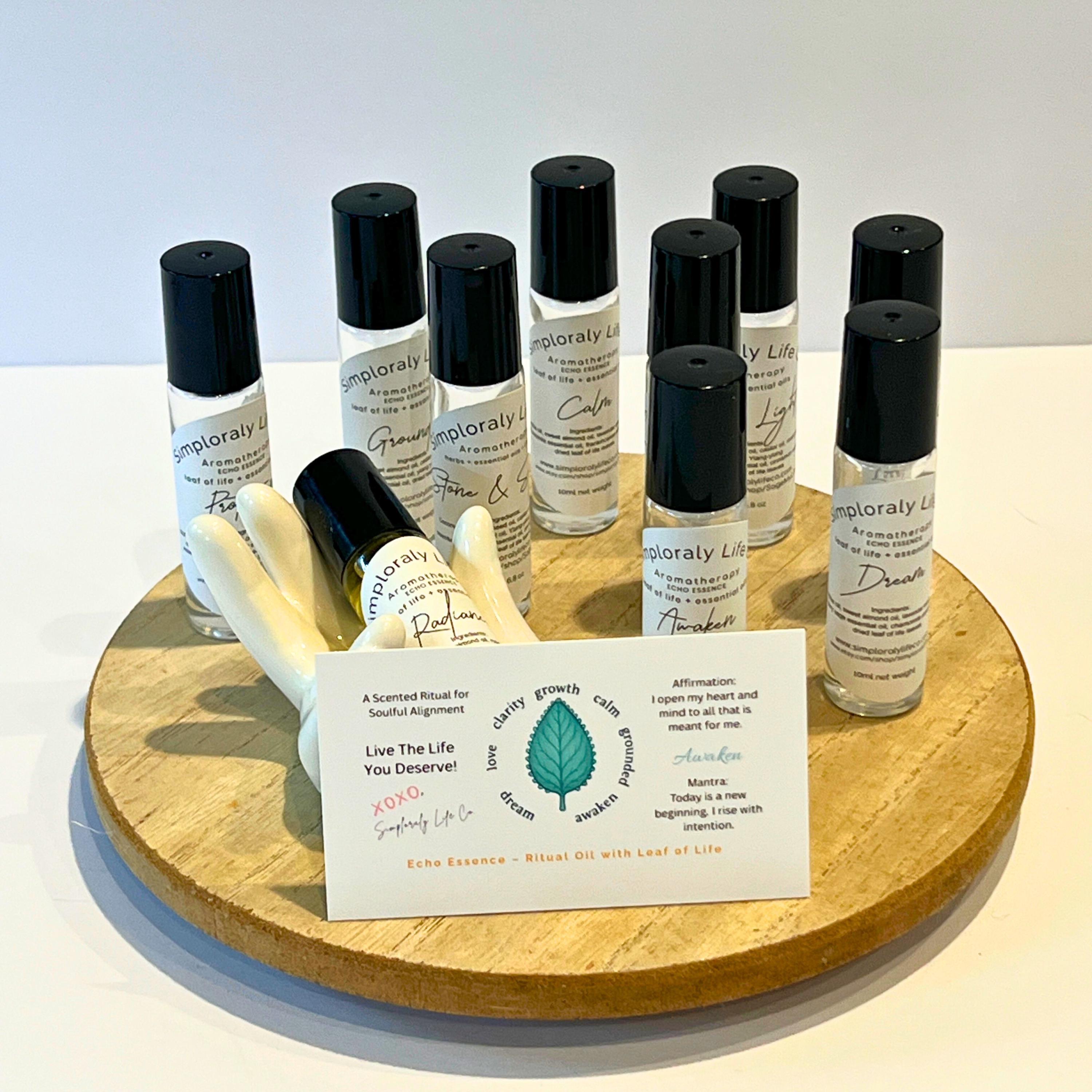 This Echo Essence Ritual Oil Collection is designed for the woman returning home to herself. Each bottle is an intentional frequency crafted for grounding, calming, softening, awakening, protecting, loving, expanding and aligning your energy.