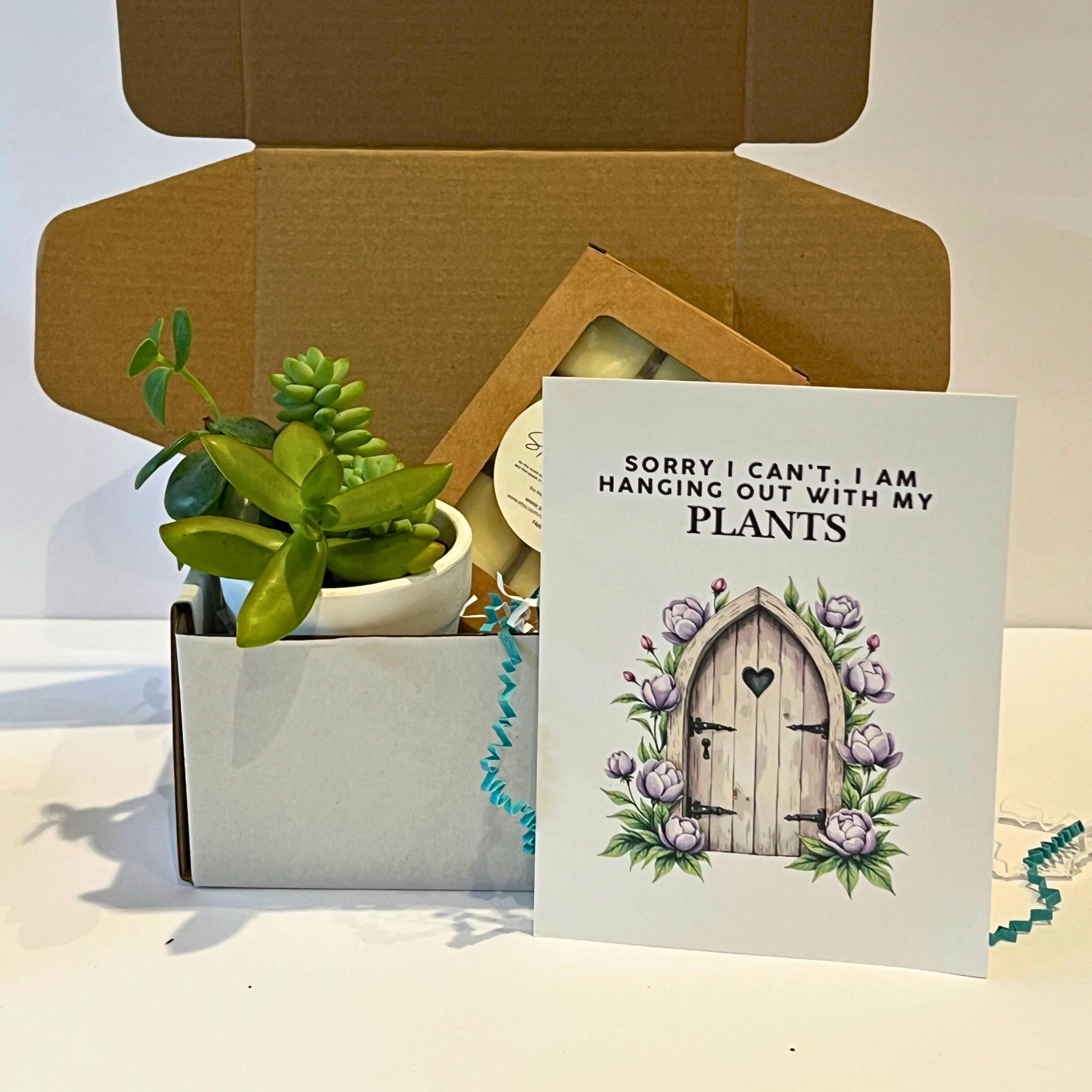• Humor card: “Sorry, I can’t I’m hanging out with my plants”