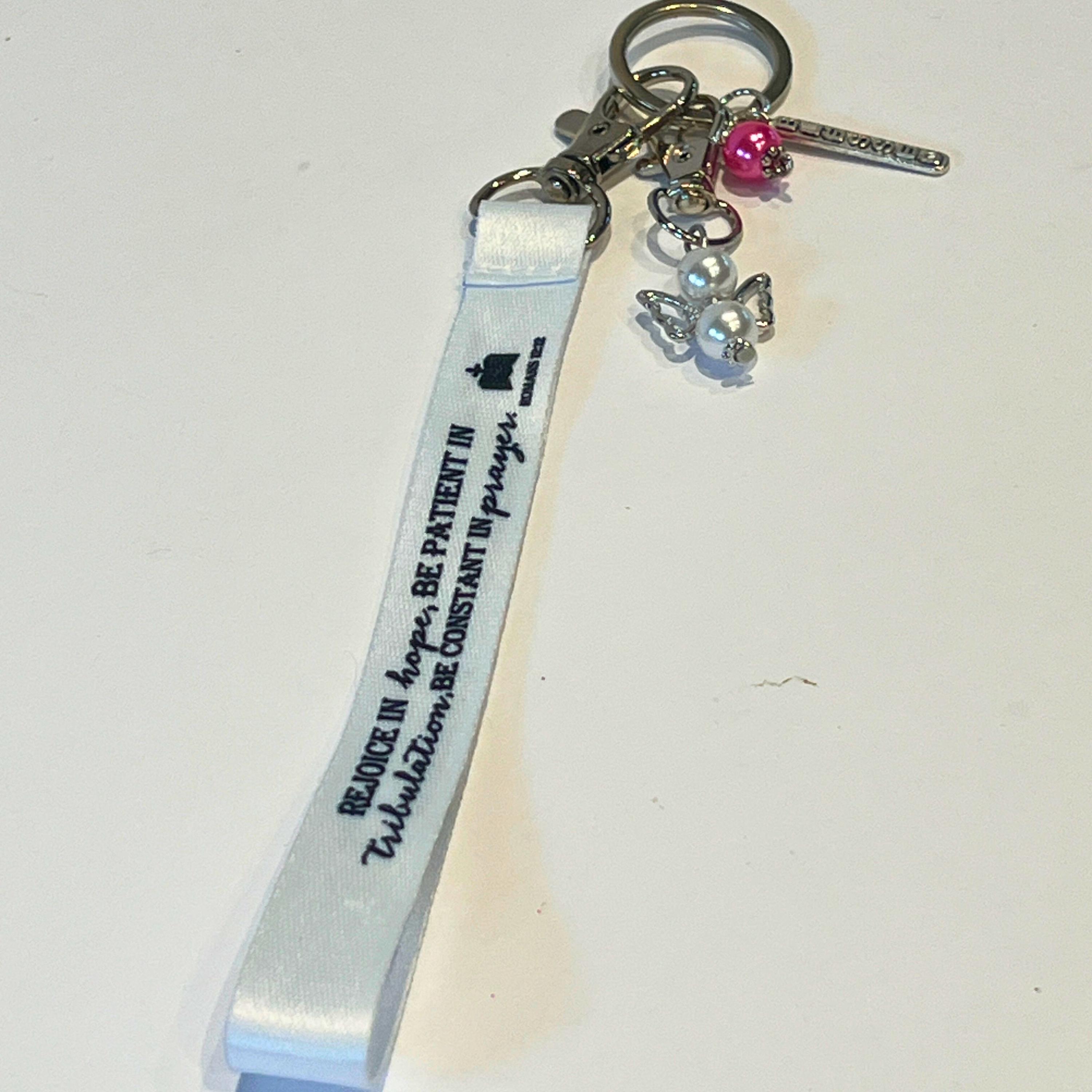 Bright, pure, and uplifting this white wristlet keychain is designed to encourage and strengthen.