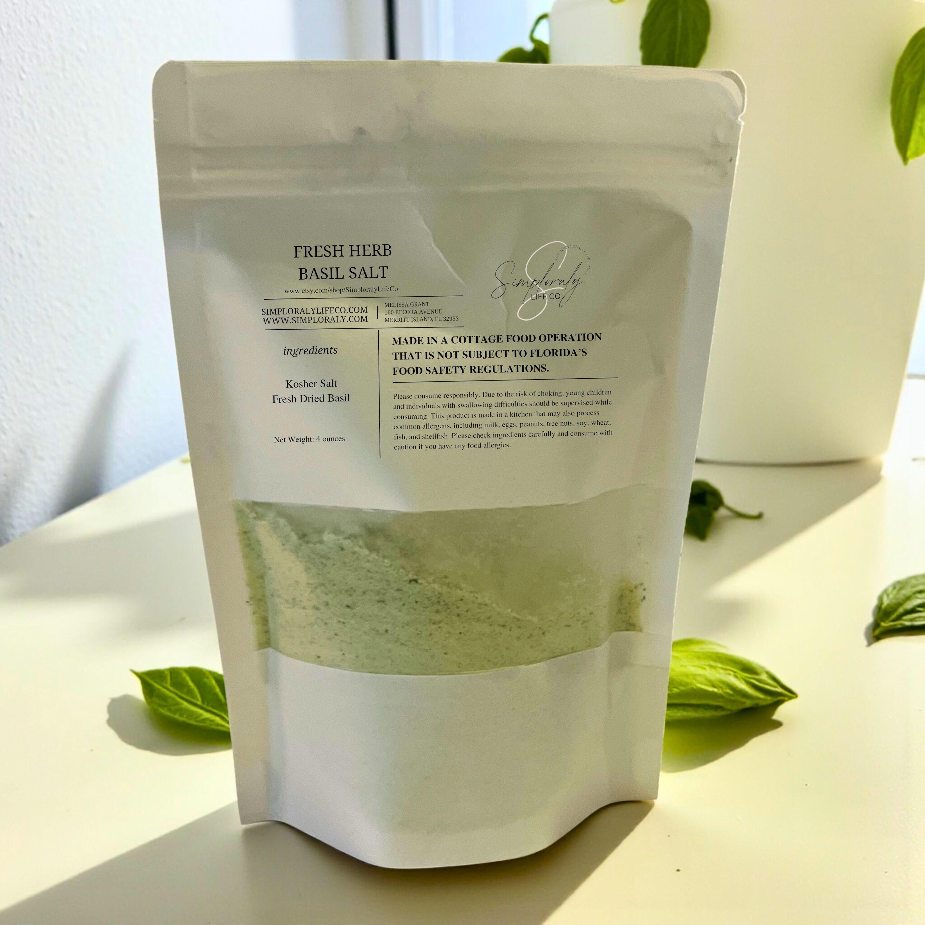 Bring fresh herb flavor to every dish with this aromatic Basil Salt crafted with care at Simploraly Life Co.