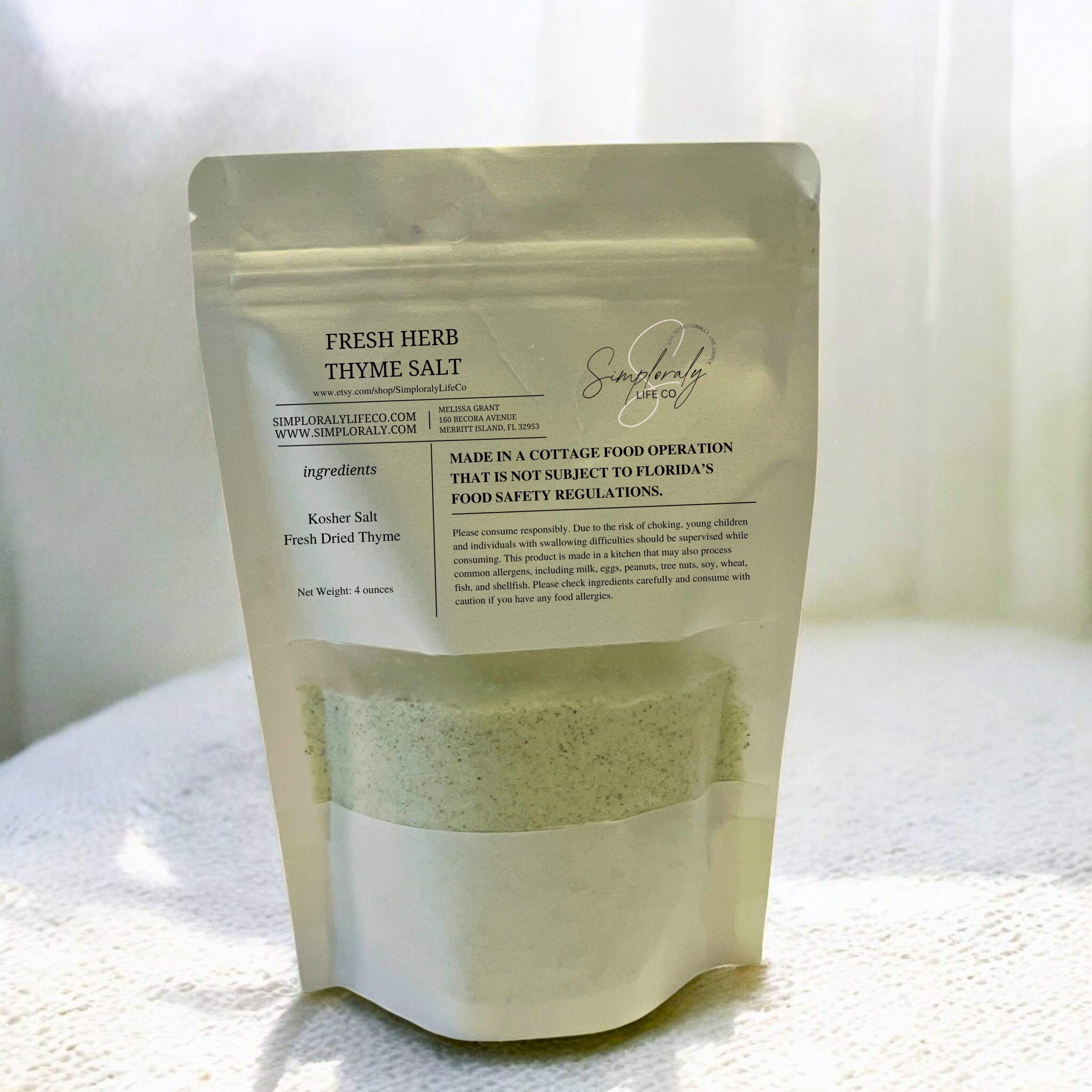 Bring warm, earthy flavor to your cooking with this small-batch Thyme Salt, made with real dried thyme and premium kosher salt. This gourmet herb salt adds instant depth to roasted chicken, potatoes, vegetables, soups, breads, and marinades.