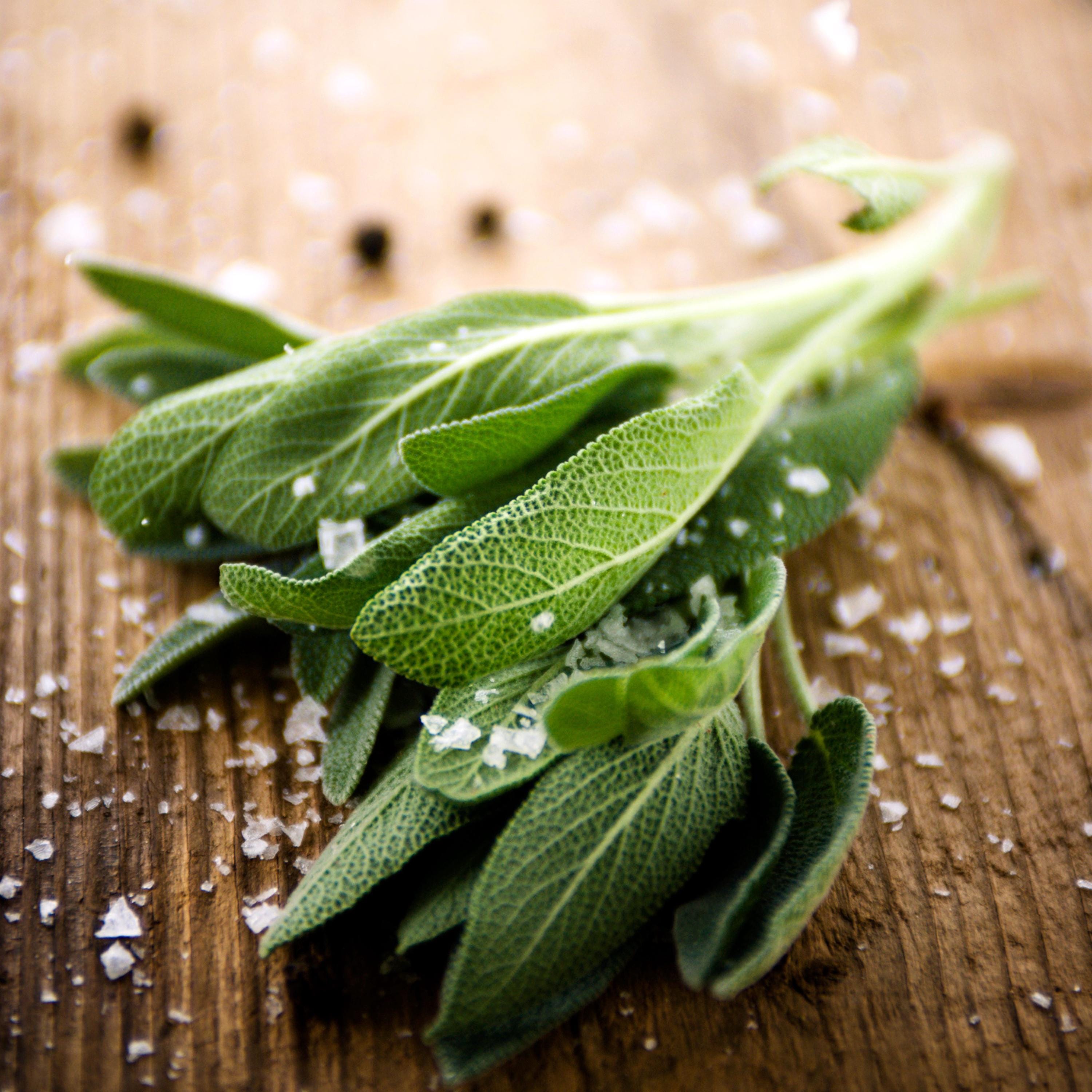 Kosher salt, dried sage.