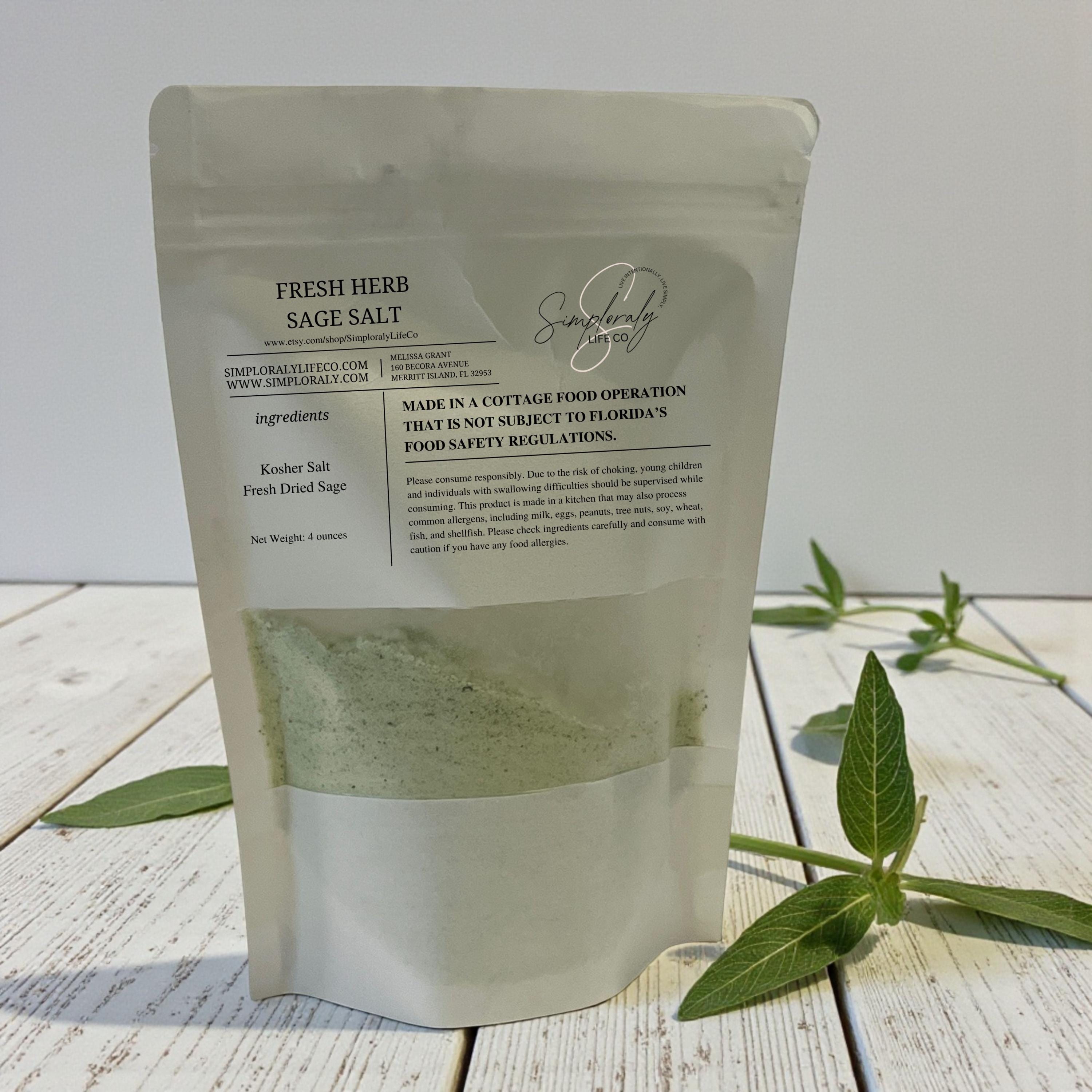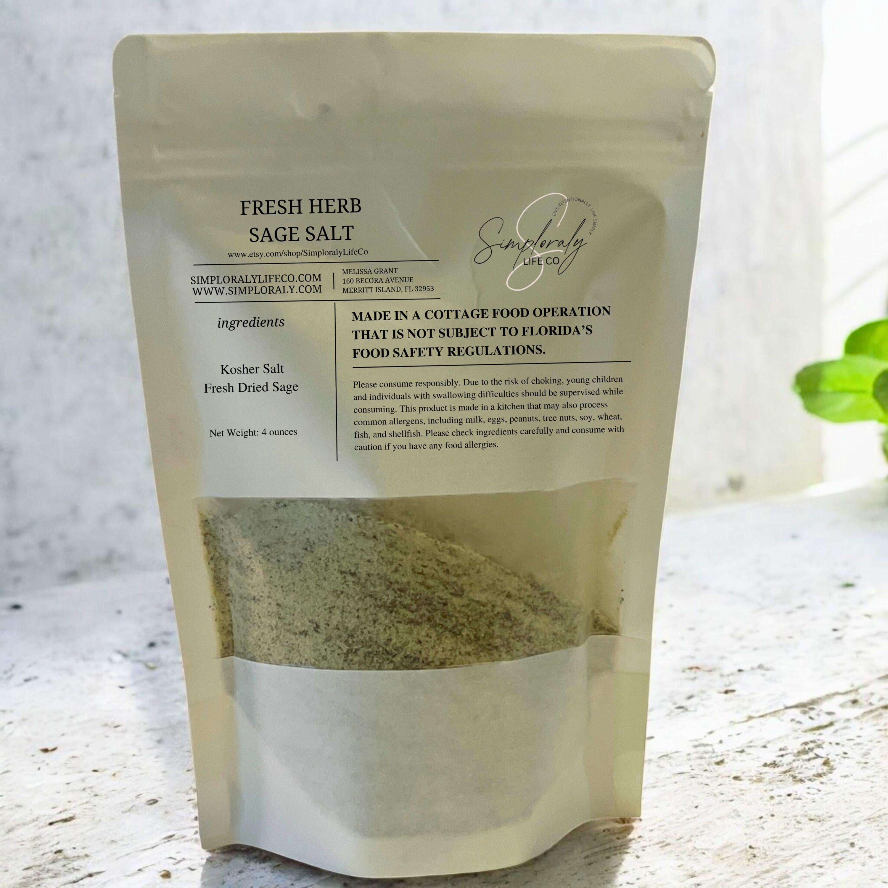Warm and aromatic, this handcrafted Sage Salt blends premium kosher salt with real dried sage for a comforting, savory flavor. Perfect for holiday meals, everyday cooking, and autumn-inspired dishes.