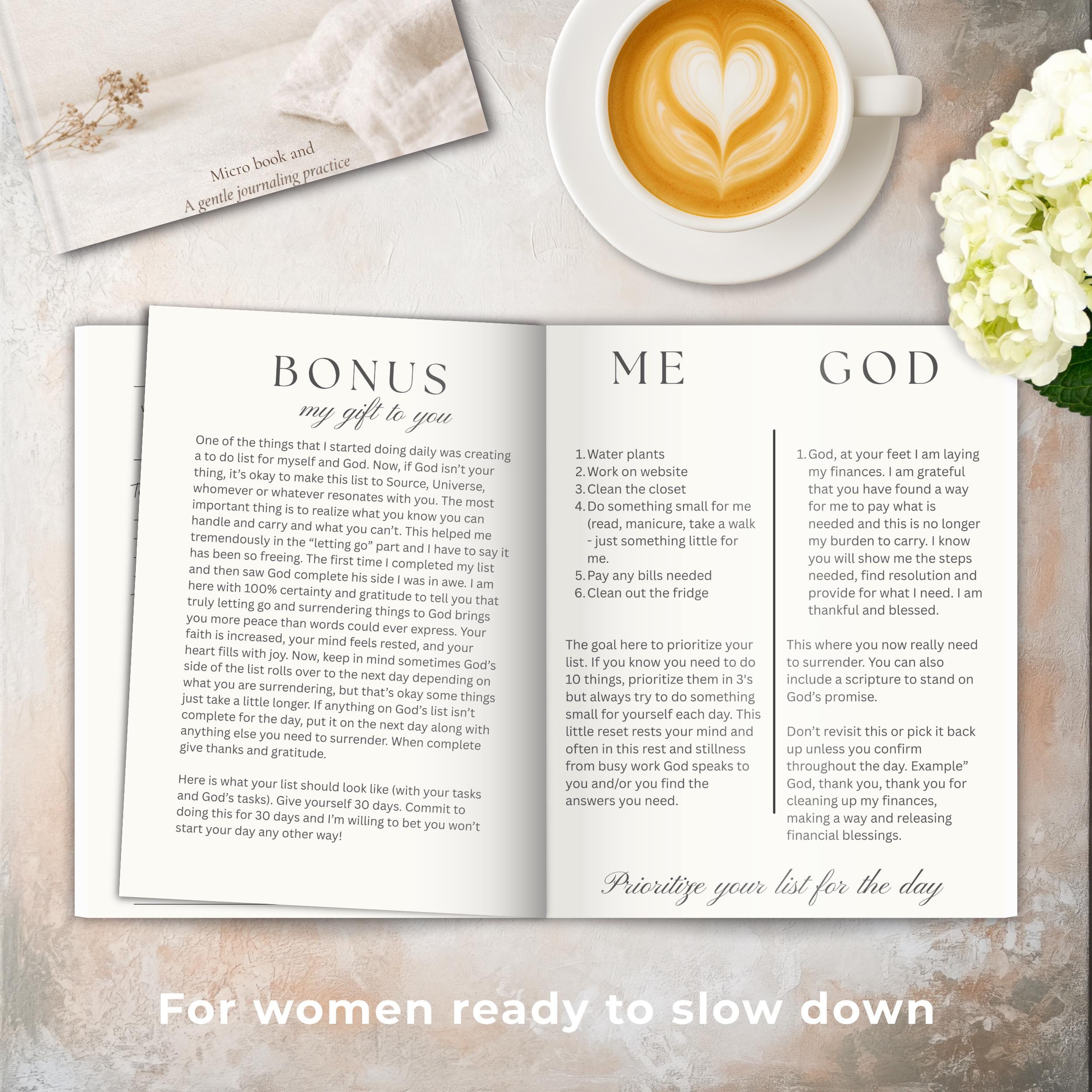 Paired with a short companion micro book, this practice gives language to what you’re feeling, reminds you why you’re writing, and gently supports you as you return to what feels steady, honest, and true.