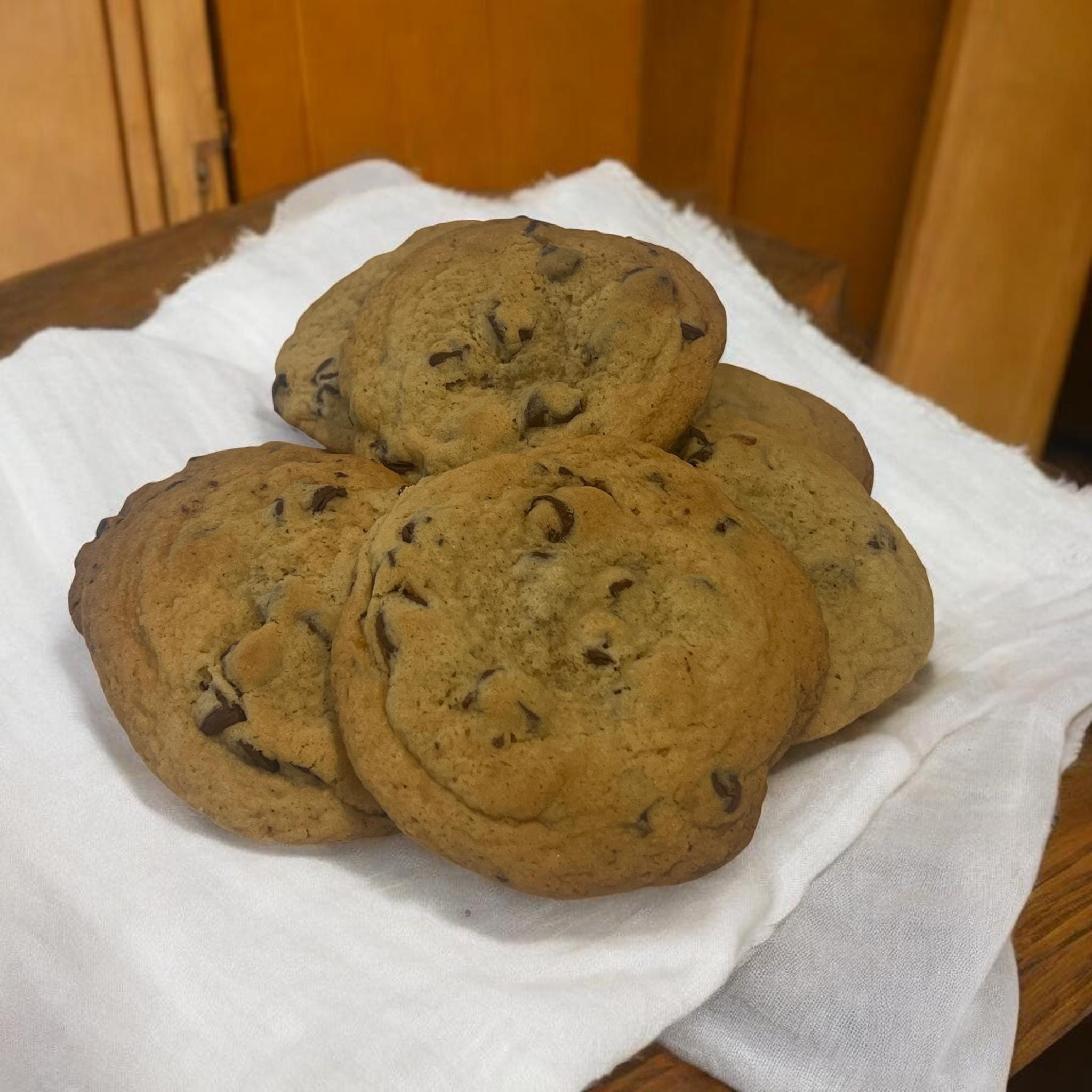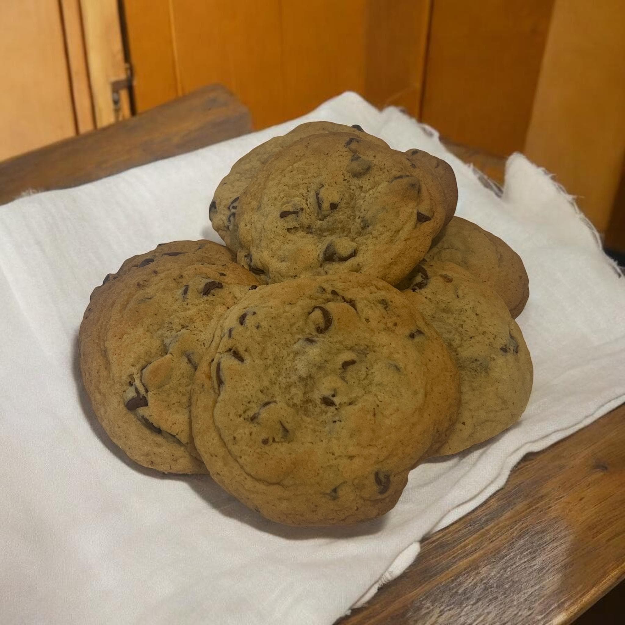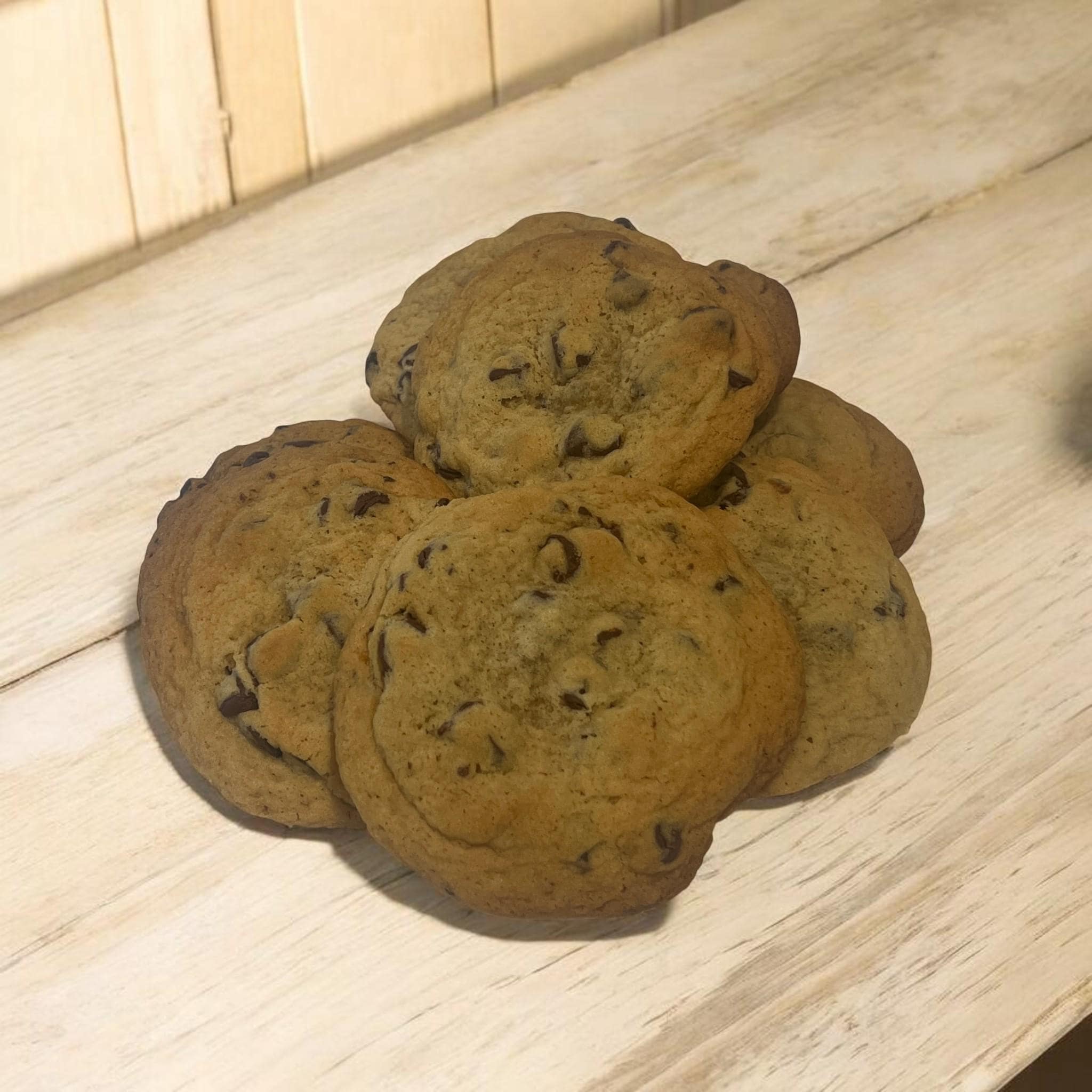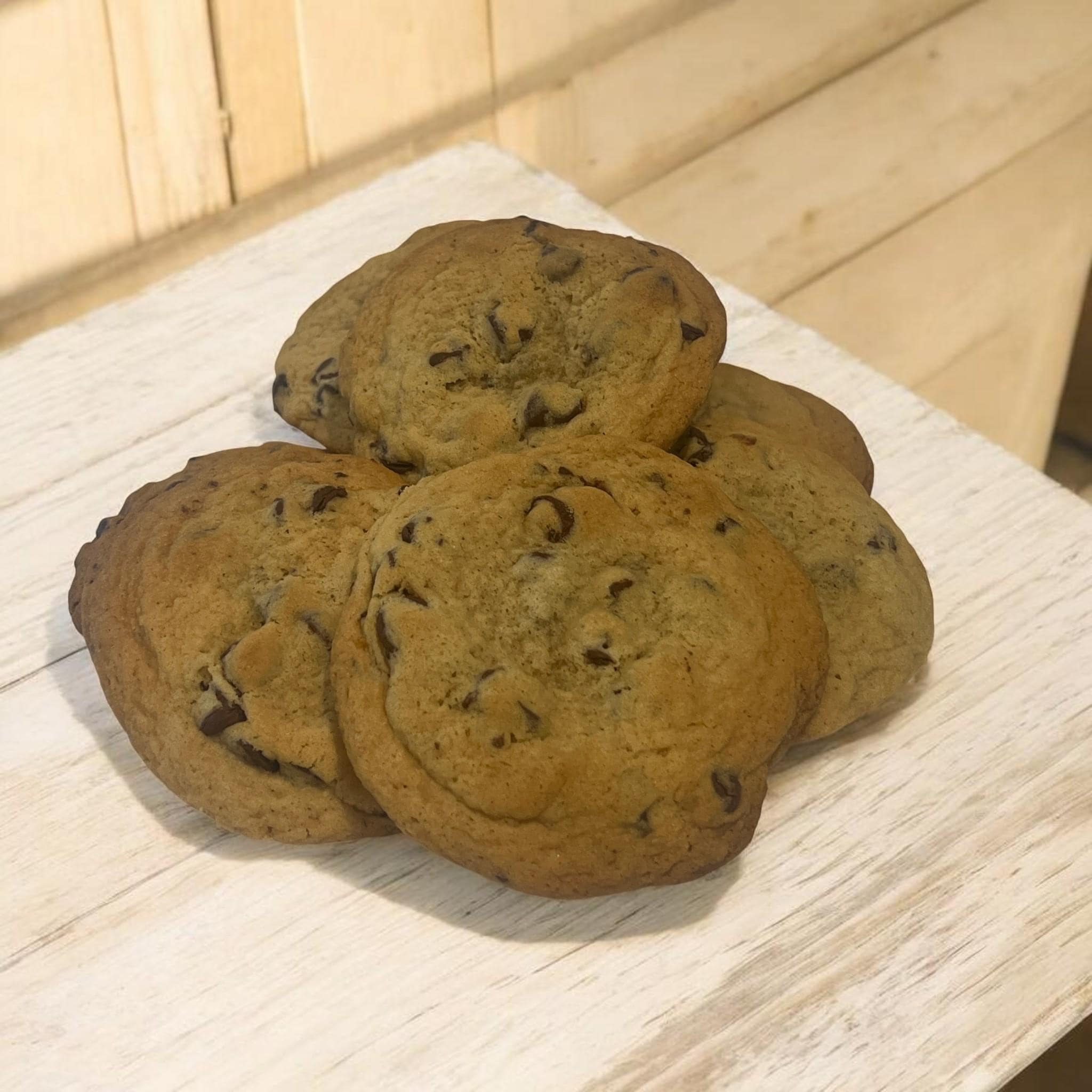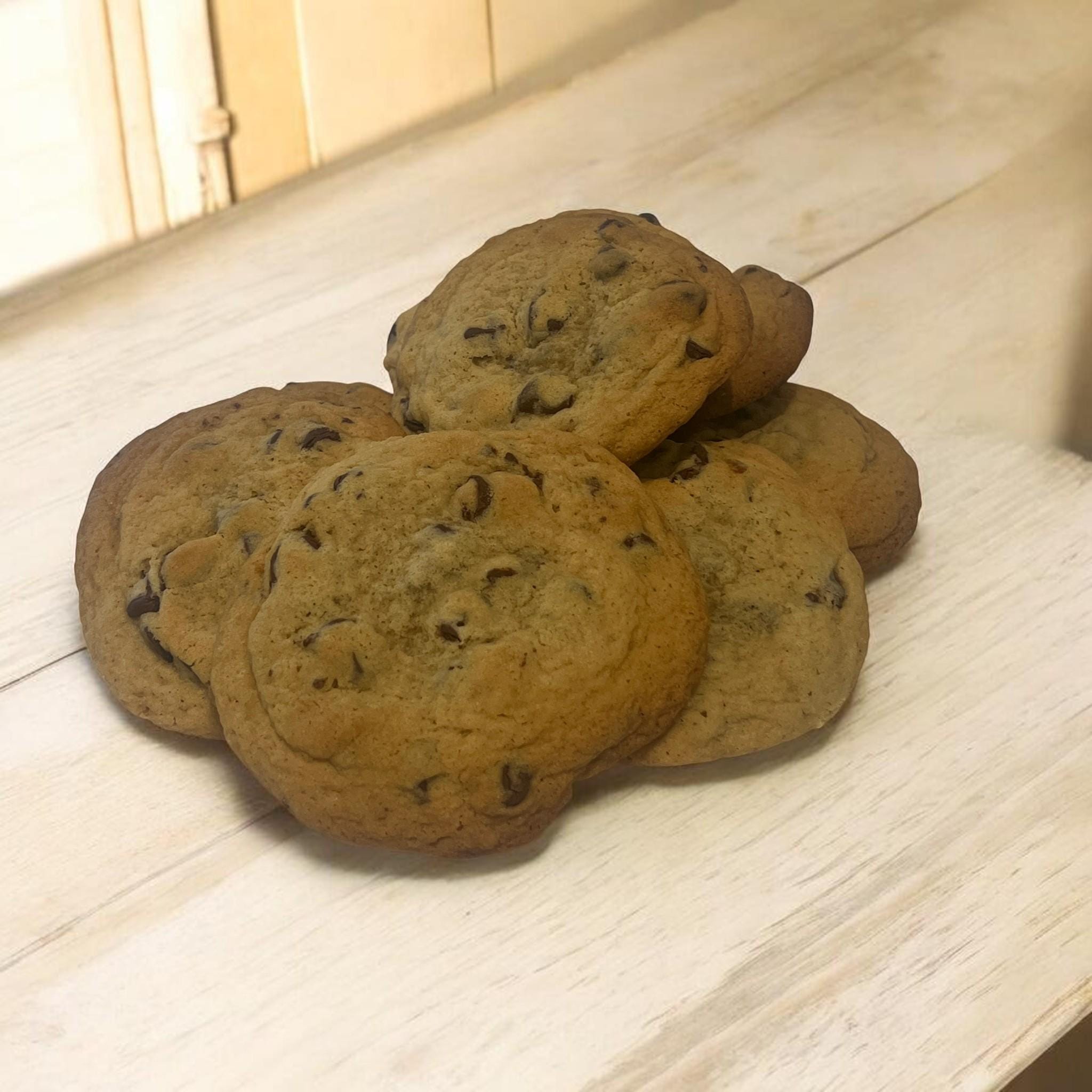 There’s nothing fancy here... and that’s the point. These are old-fashioned chocolate chip cookies; made the way they’ve always been made. Soft centers, lightly crisp edges, and real chocolate chips in every bite. Not oversized. Not stuffed. Just good, familiar cookies that taste like home.