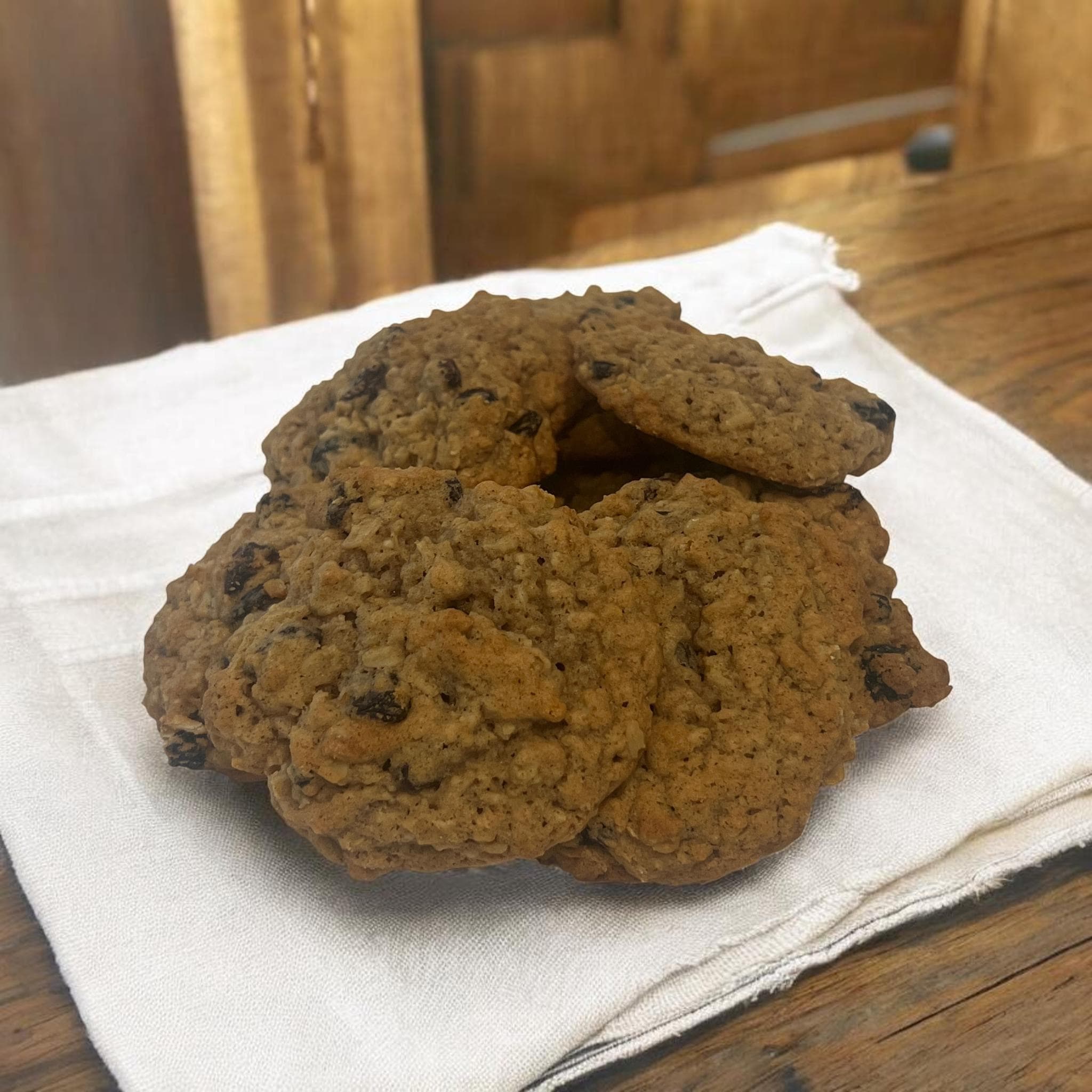 Warm, hearty, and quietly comforting. These are old-fashioned oatmeal raisin cookies, baked with rolled oats and plump raisins for a soft, satisfying cookie that feels familiar from the very first bite. Not oversized. Not overly sweet. Just a classic cookie made the way it’s always been made.