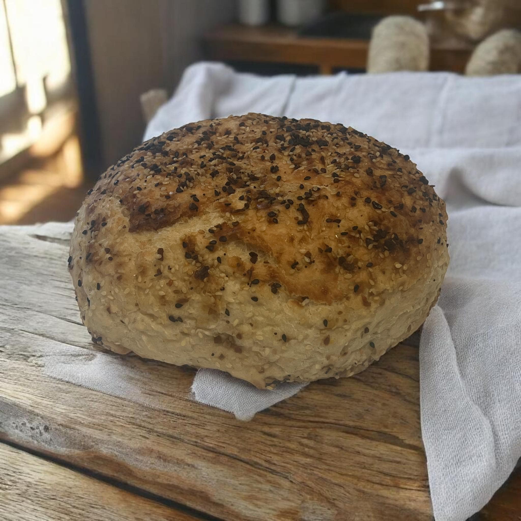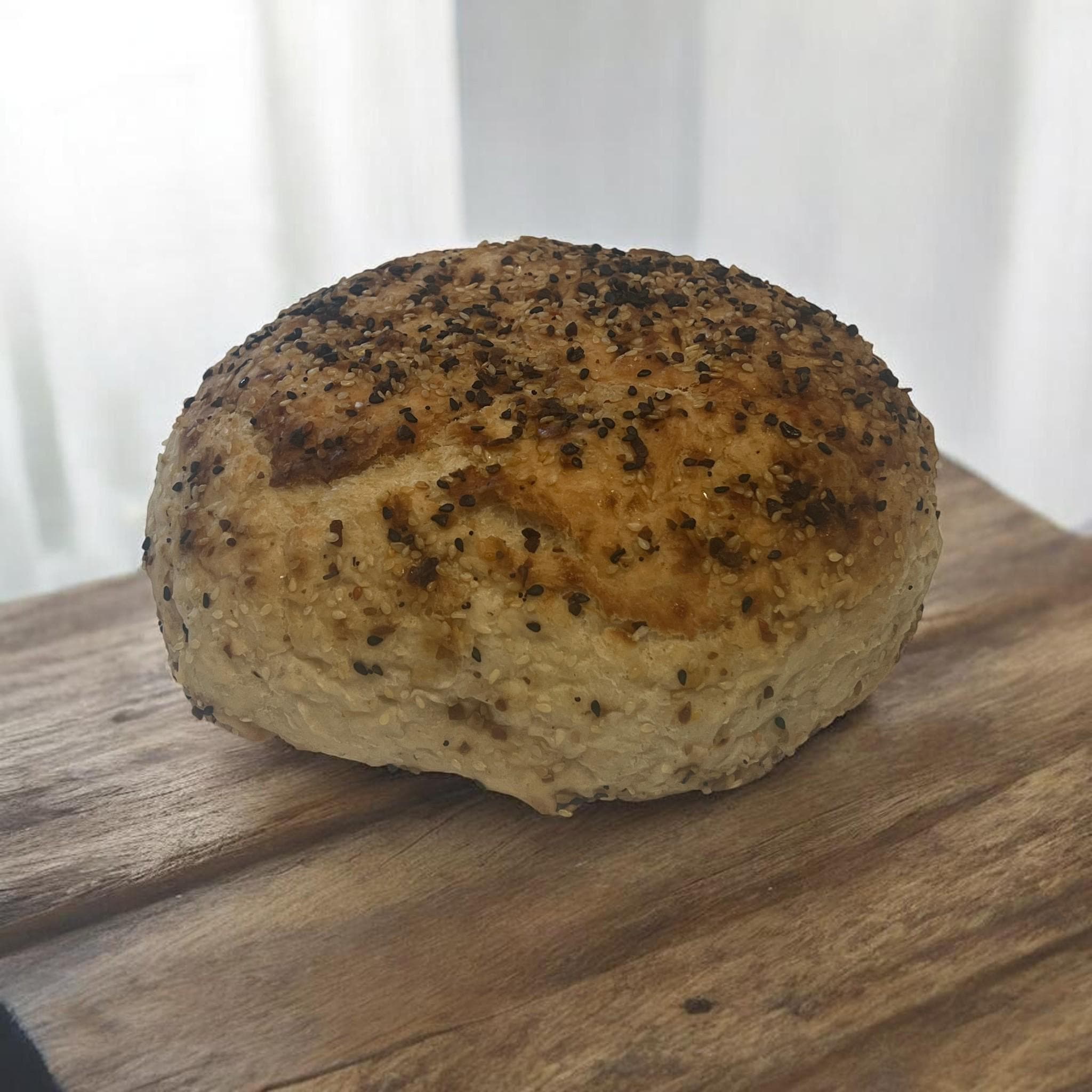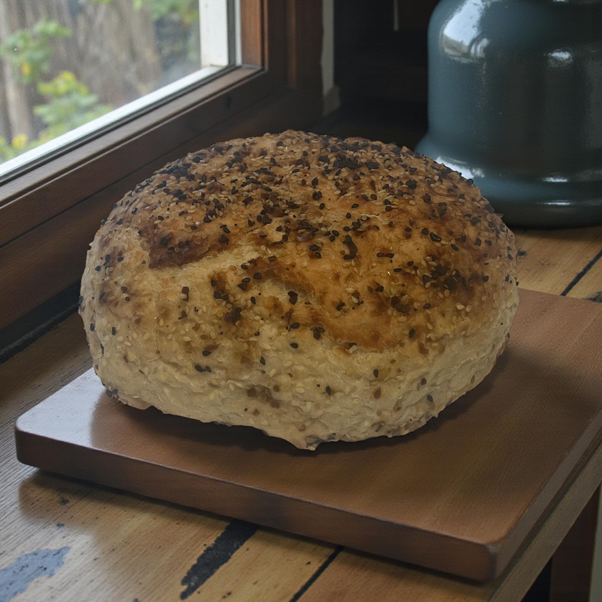 A familiar favorite with a savory finish. This everything artisan bread is a classic round loaf topped with everything-style seasoning for added flavor and texture. Soft inside, lightly crisp outside, and finished with a seasoning blend that pairs perfectly with butter, soups, and sandwiches.