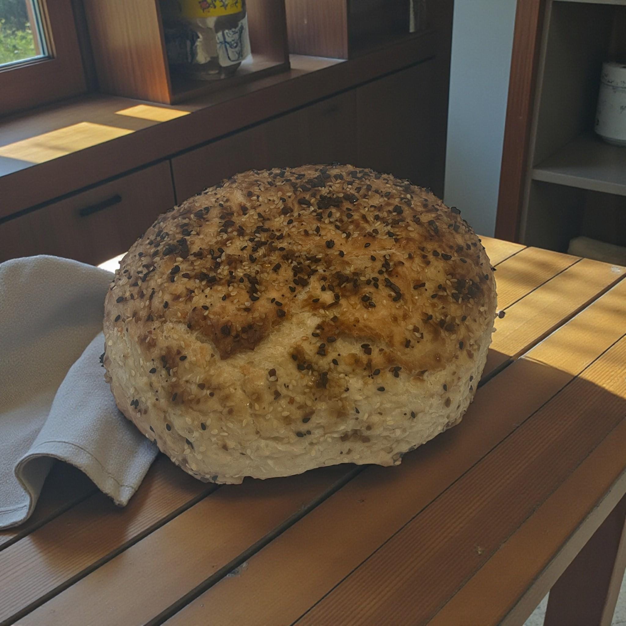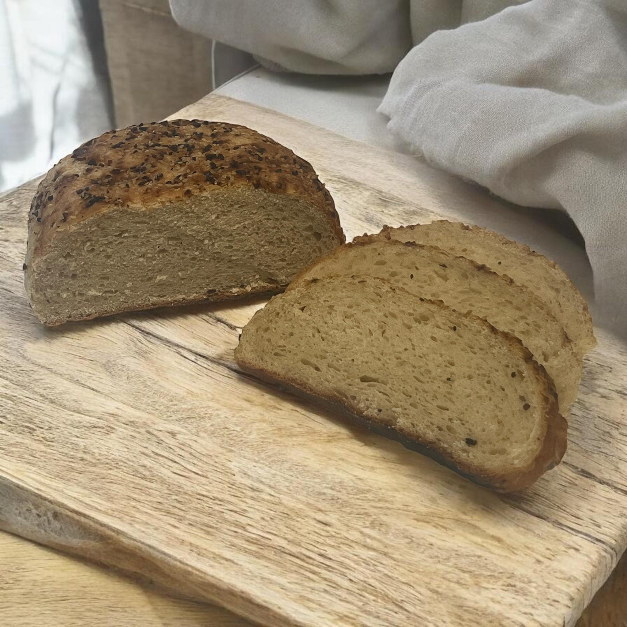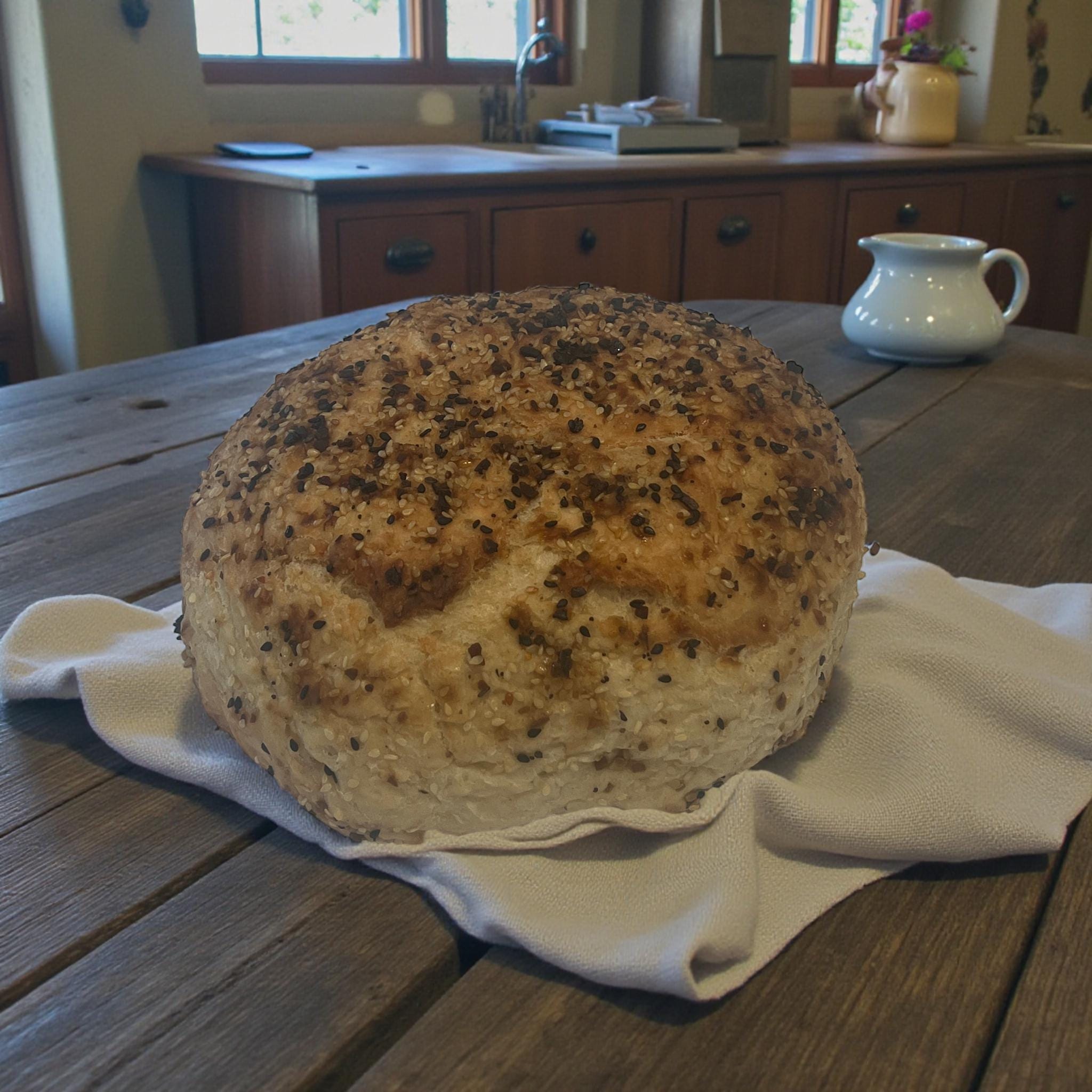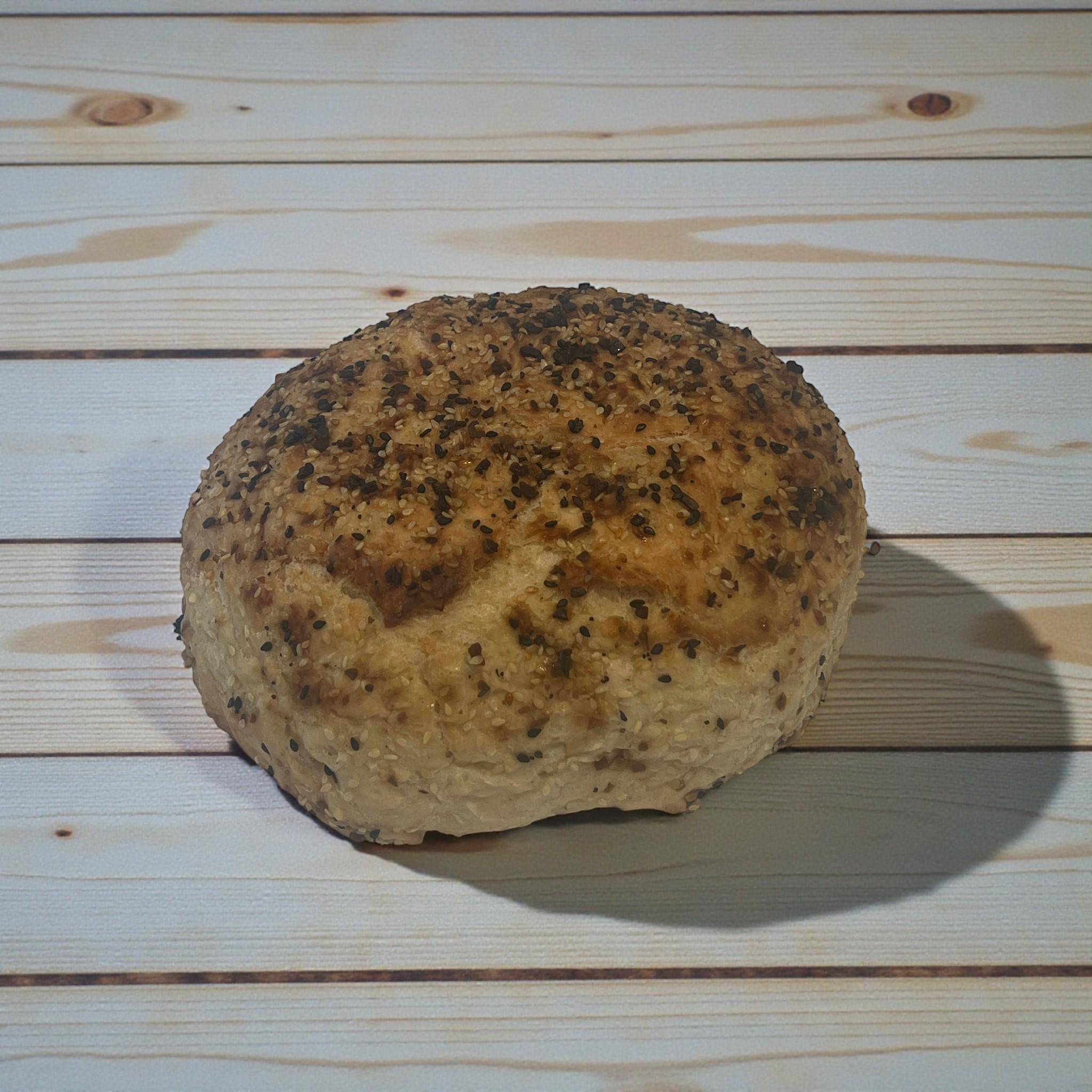 A familiar favorite with a savory finish. This everything artisan bread is a classic round loaf topped with everything-style seasoning for added flavor and texture. Soft inside, lightly crisp outside, and finished with a seasoning blend that pairs perfectly with butter, soups, and sandwiches.