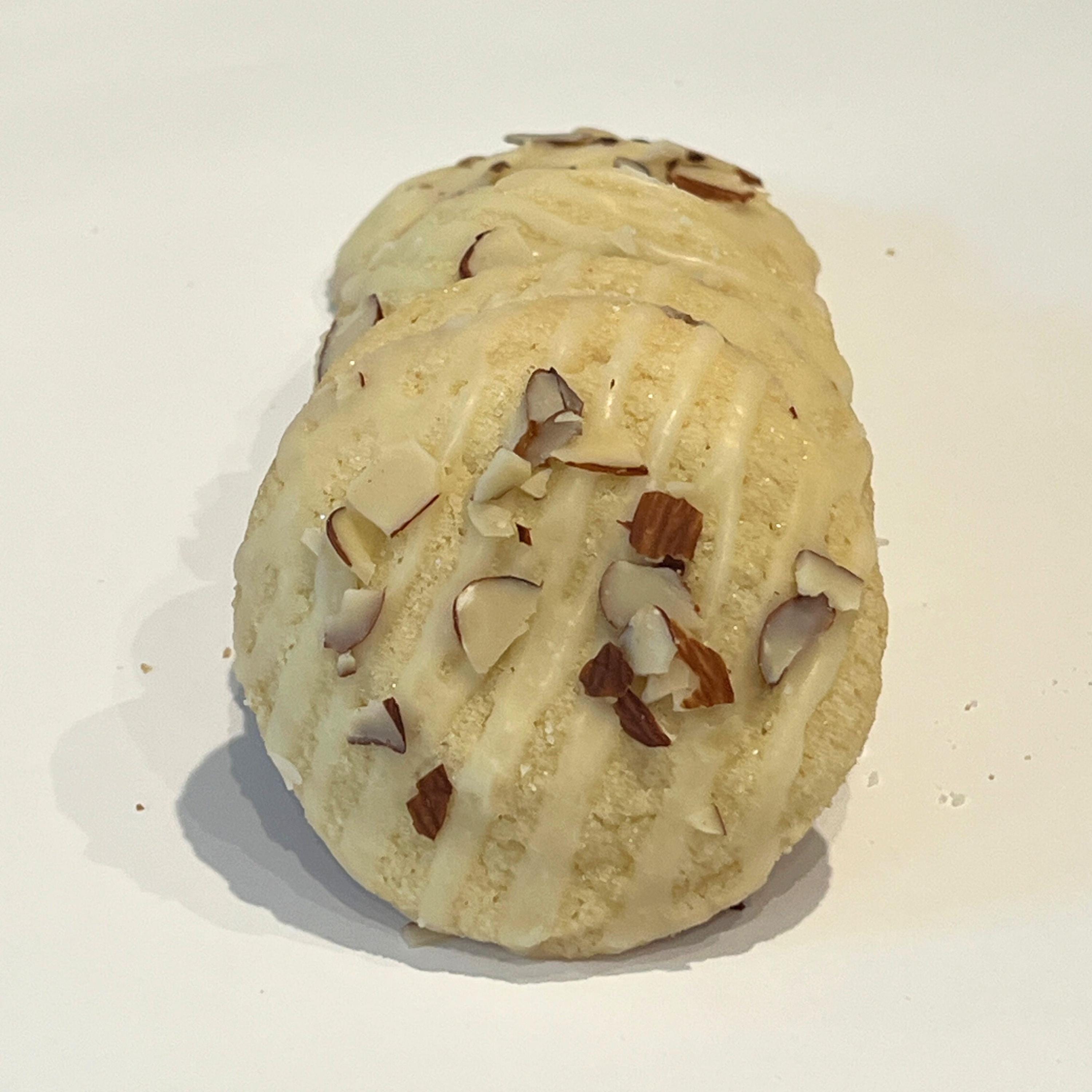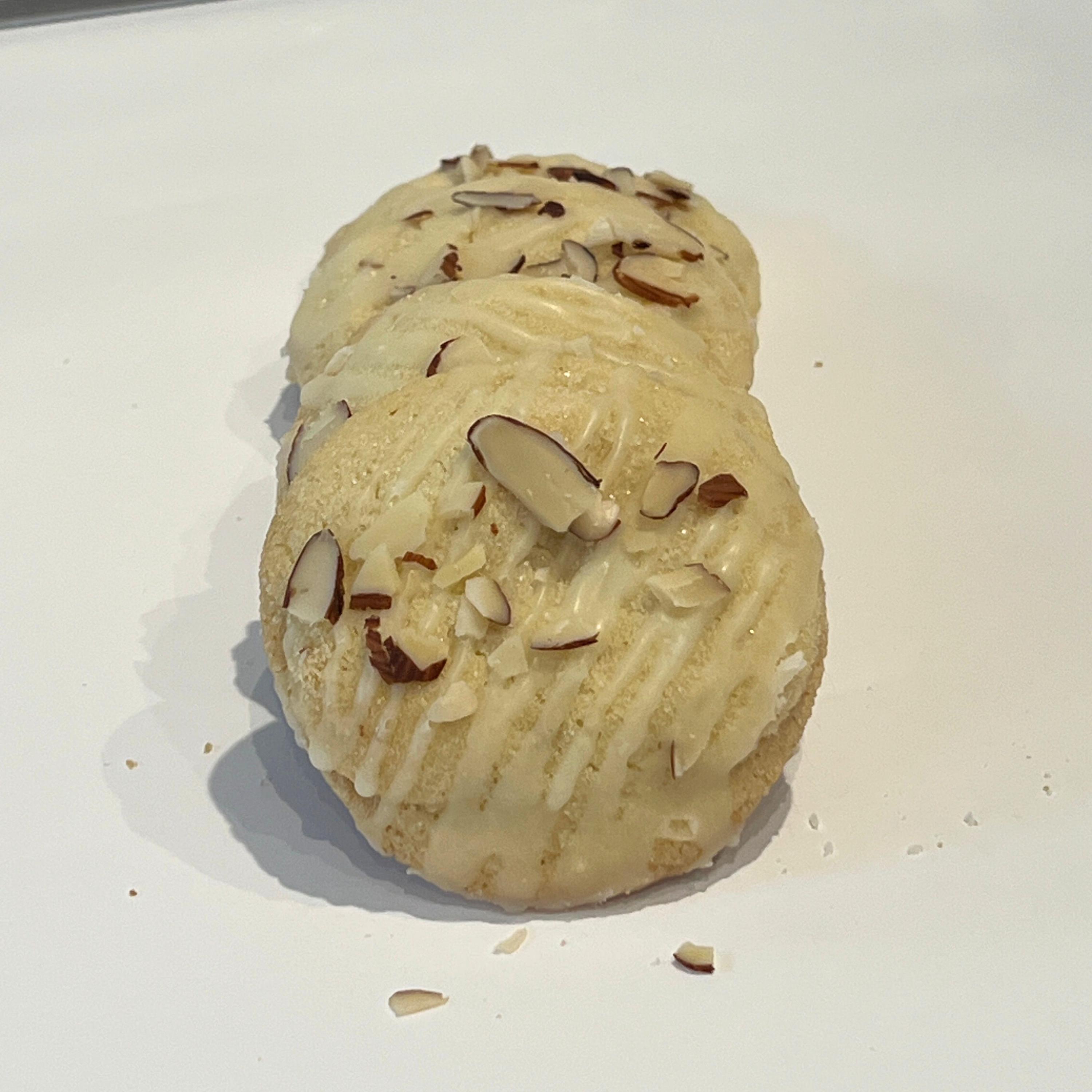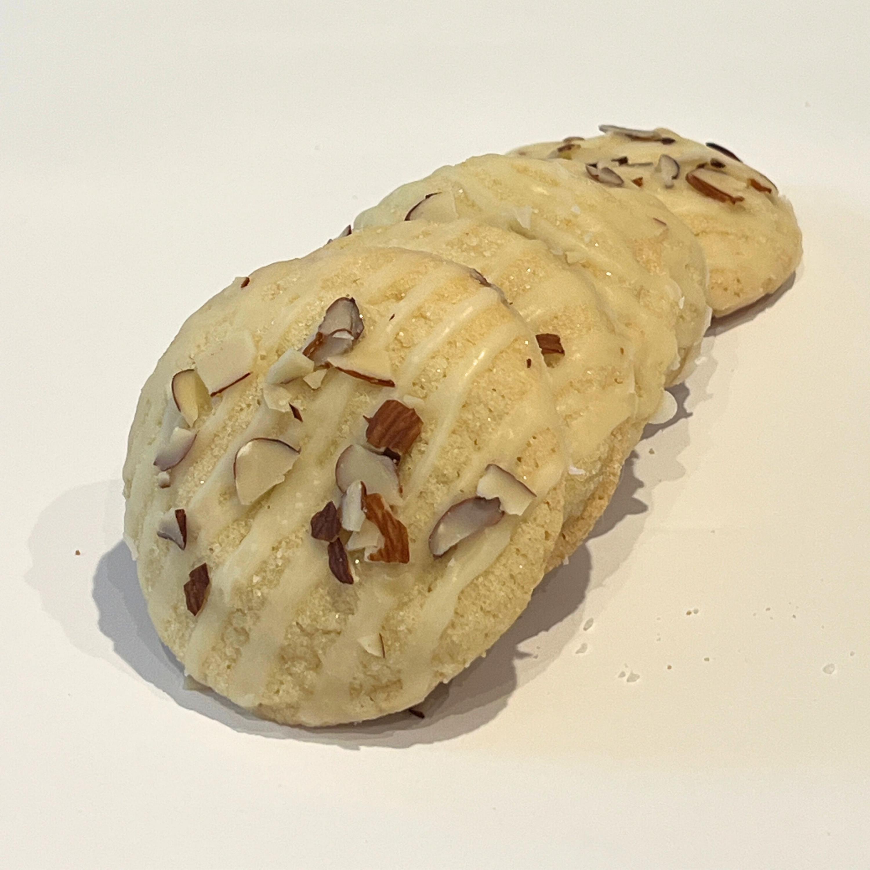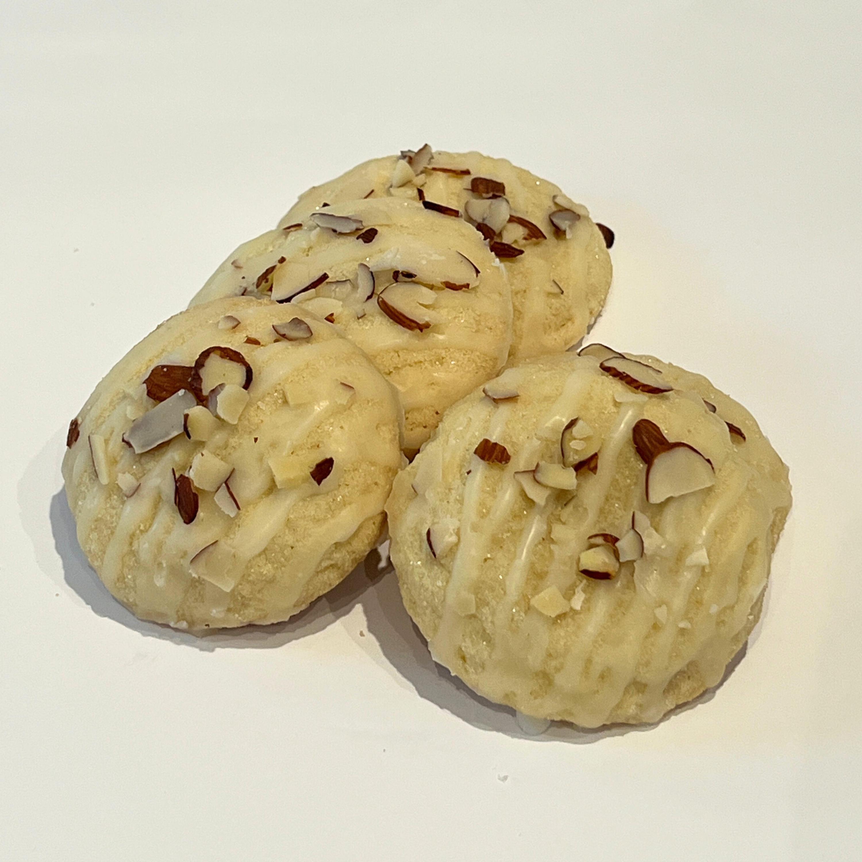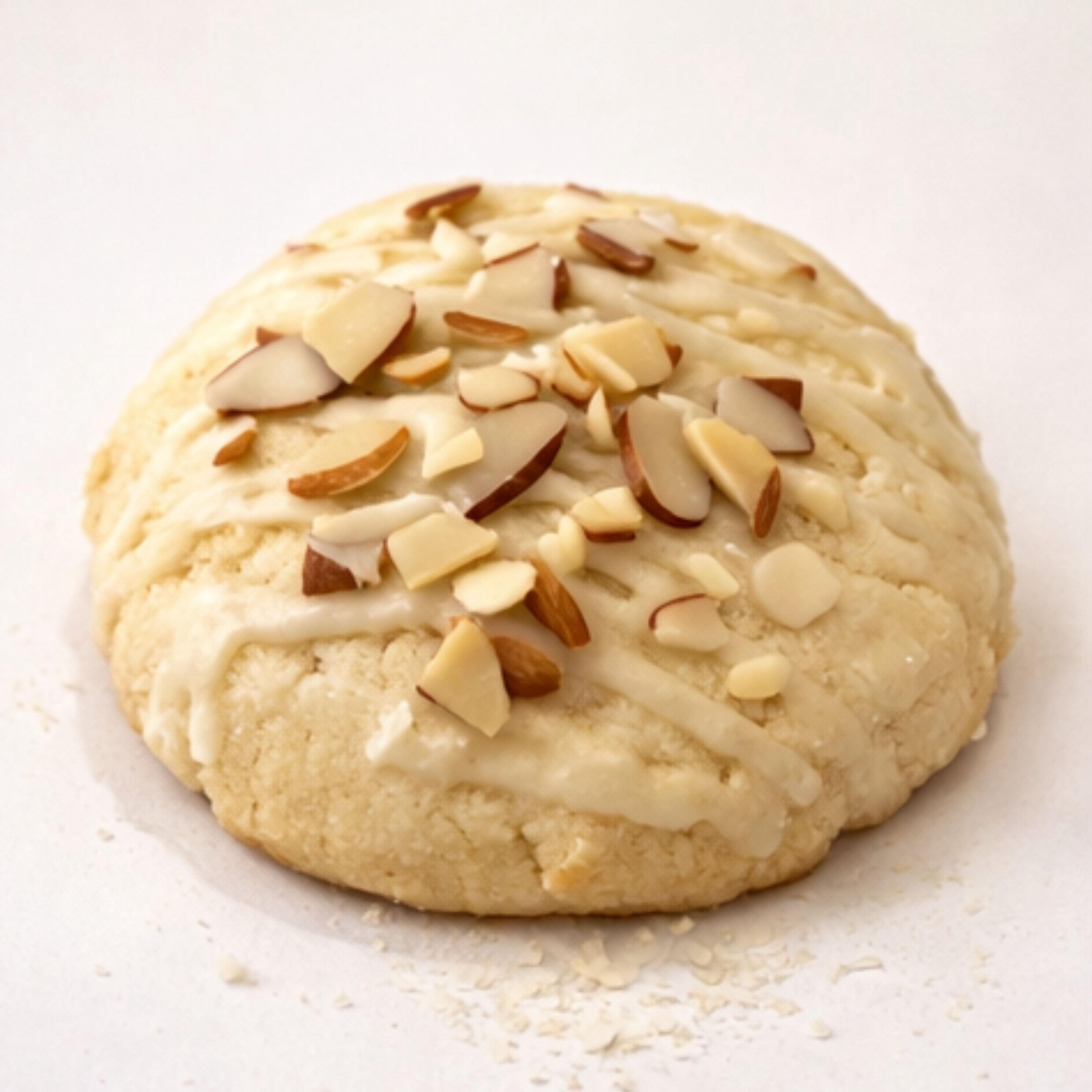 A soft sugar cookie elevated with warm, nutty flavors and finished with your choice of glaze and topped with toasted almond slivers for the perfect crunch.