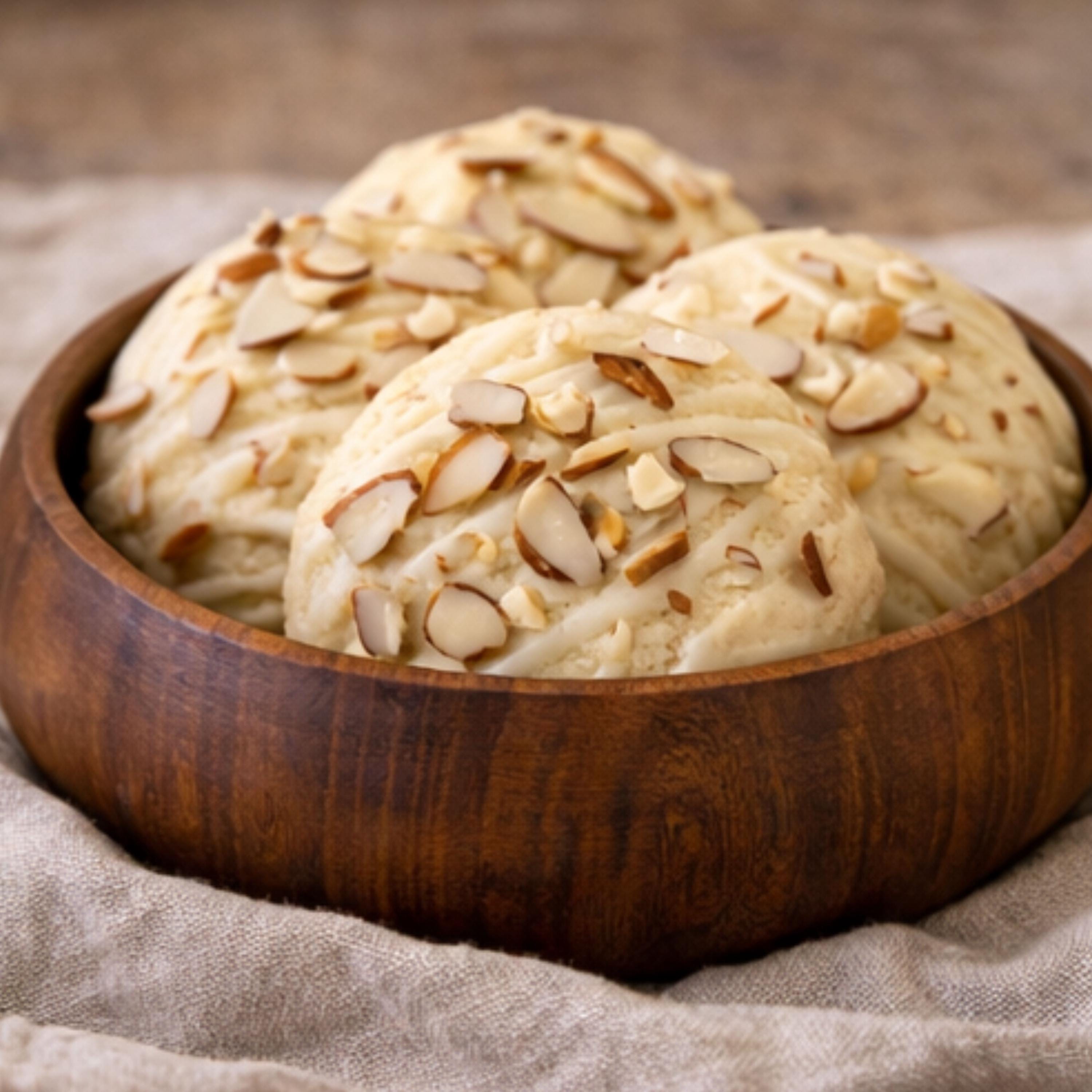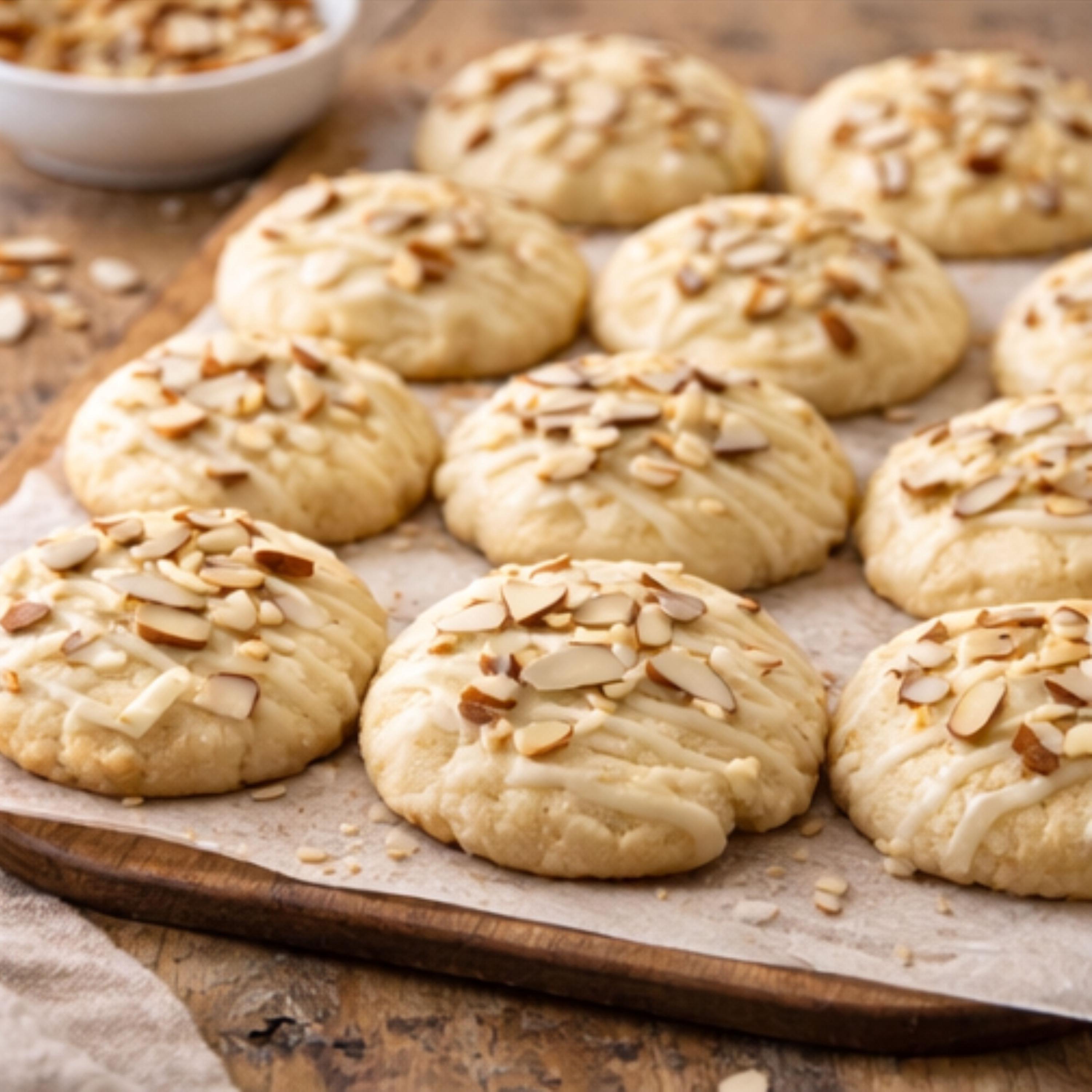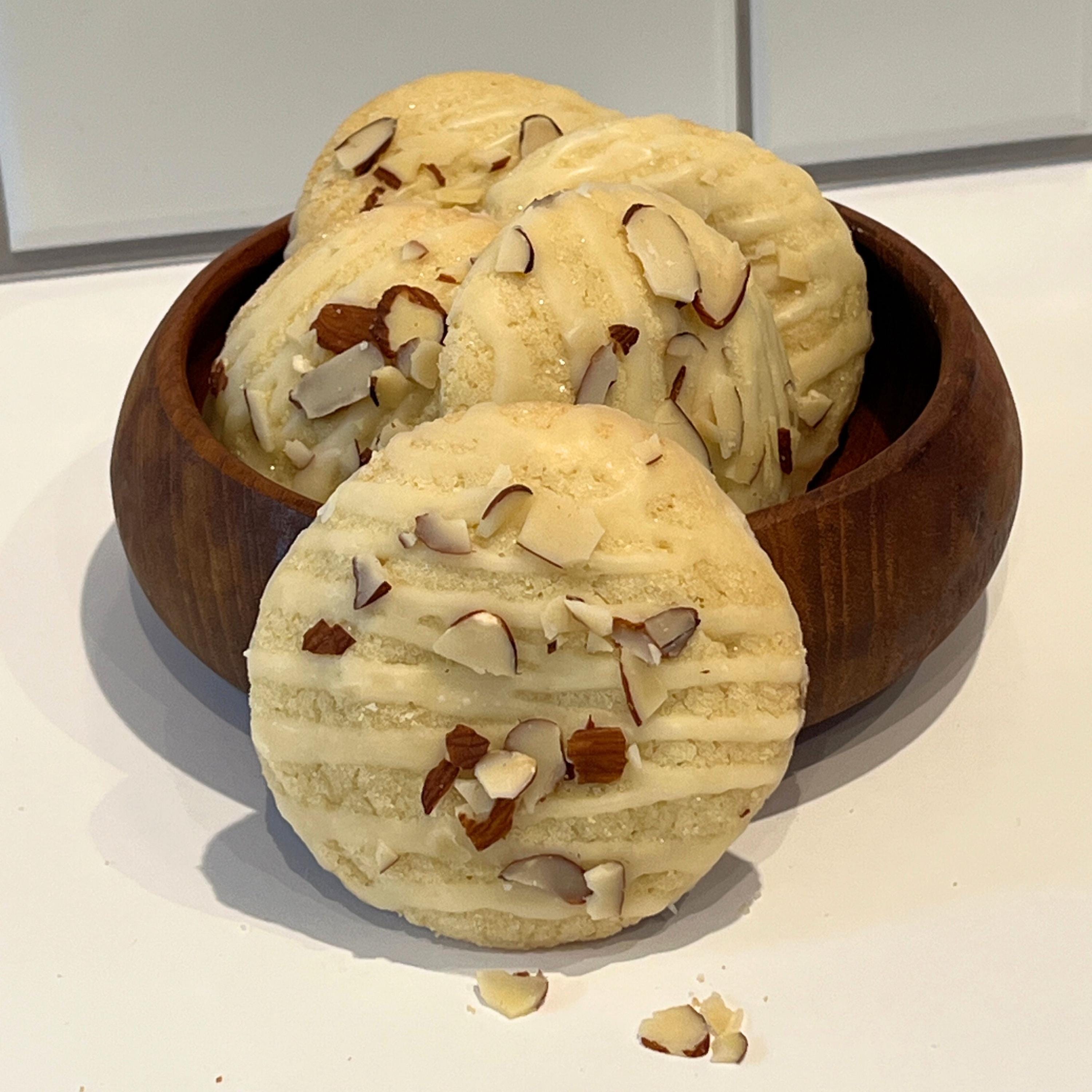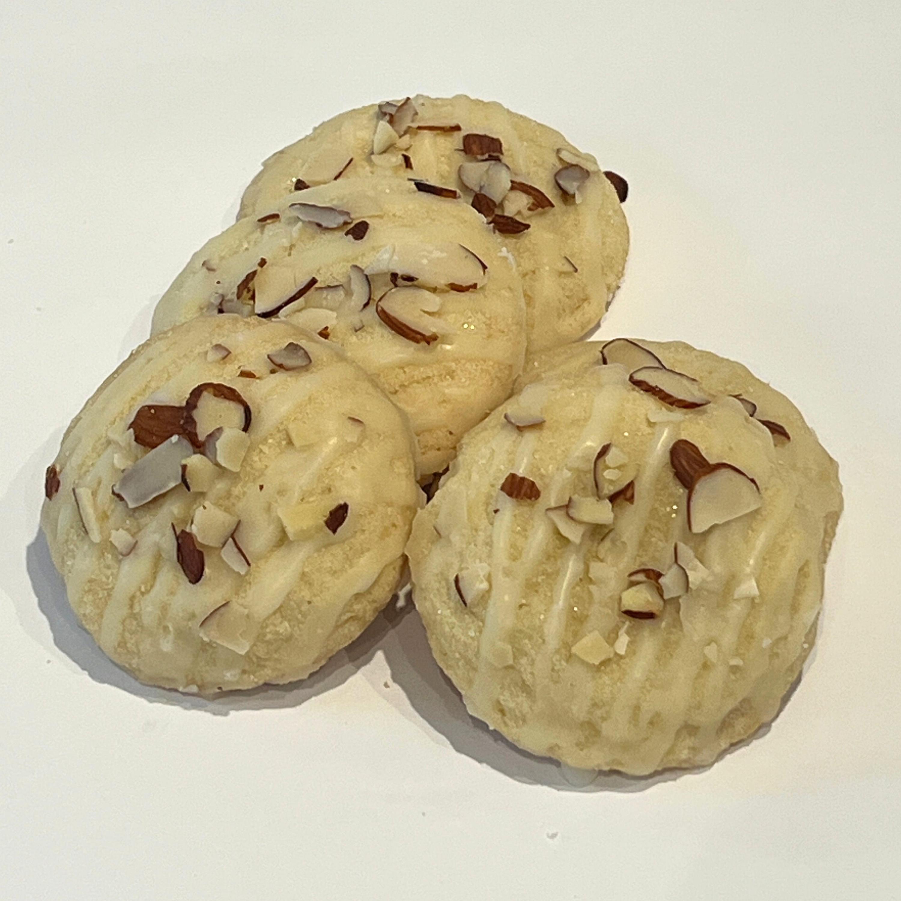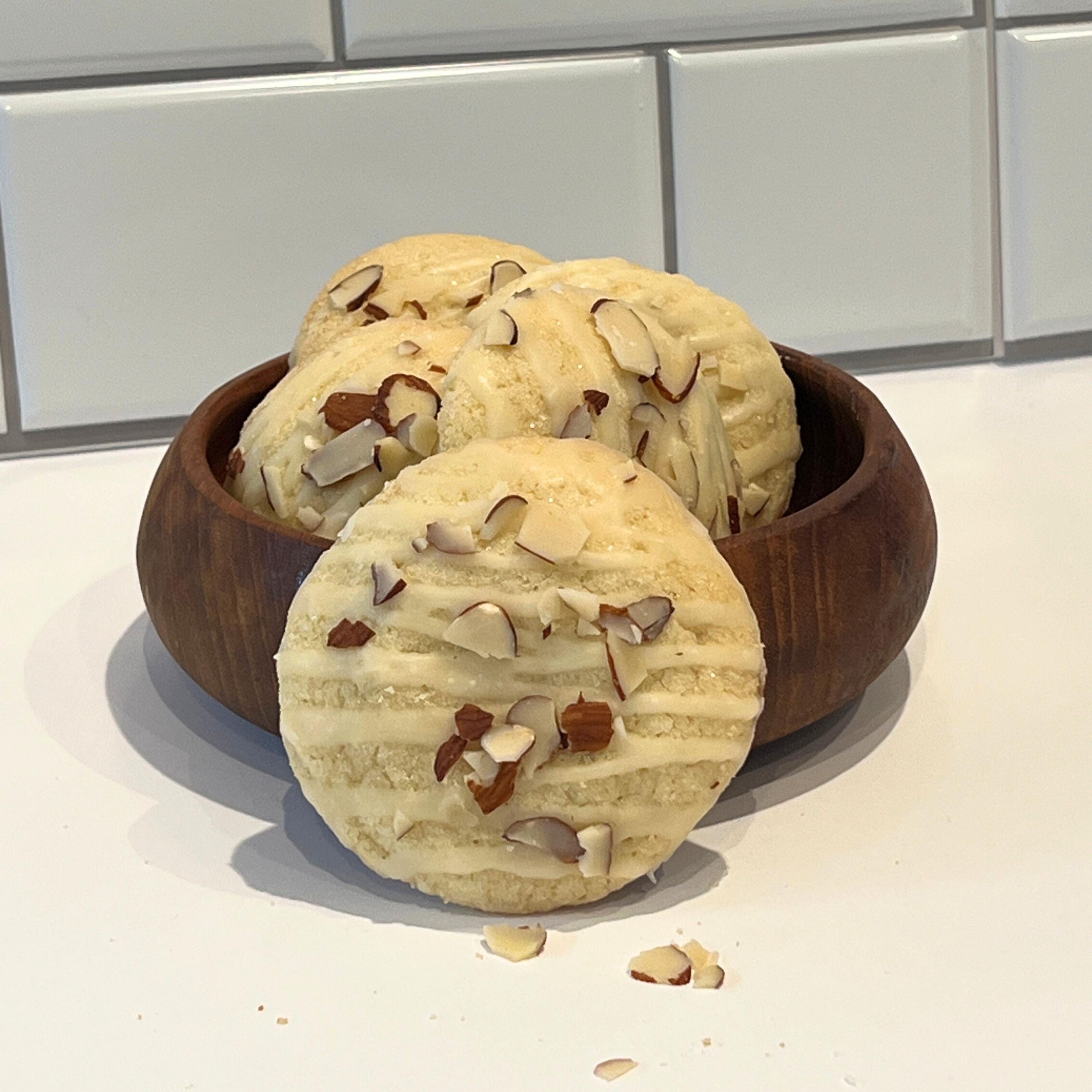 A soft sugar cookie elevated with warm, nutty flavors and finished with your choice of glaze and topped with toasted almond slivers for the perfect crunch.
